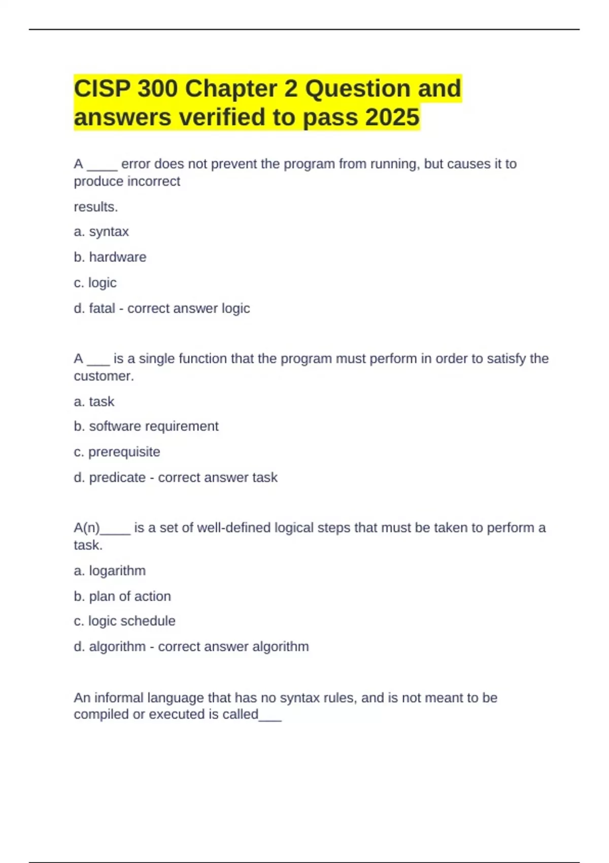 answers verified to pass 2025