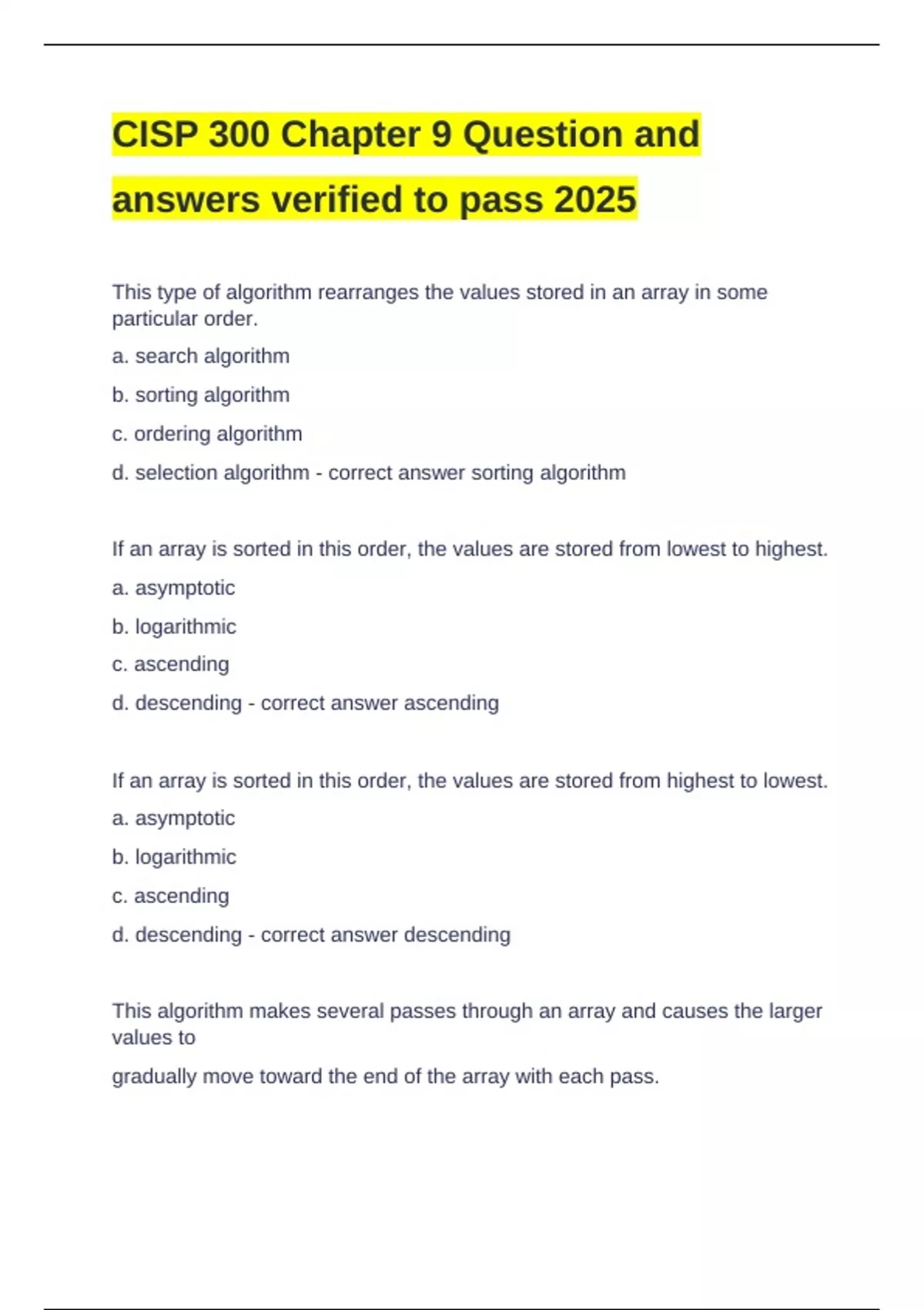 If an array is sorted in this order, the values are stored from lowest to highest.