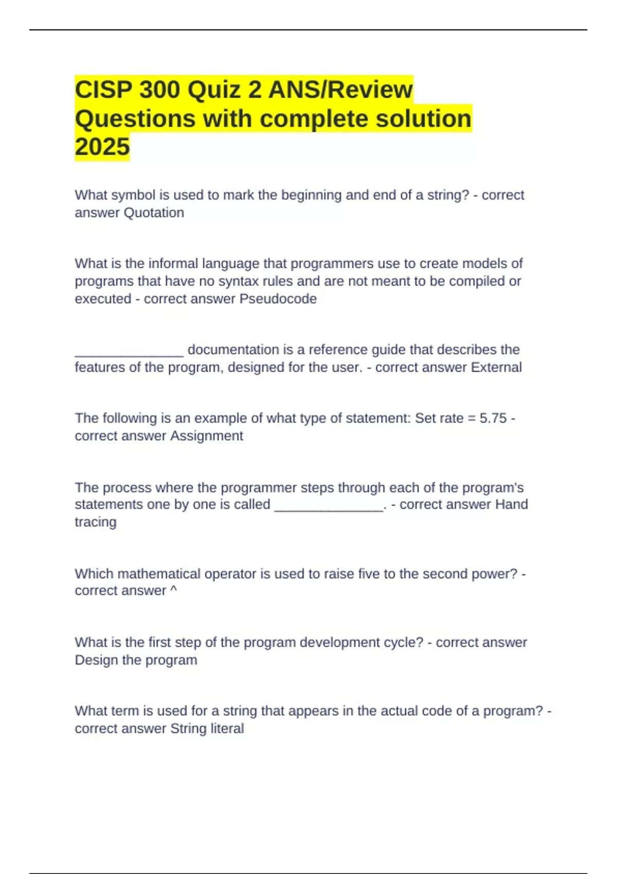 correct answer Assignment