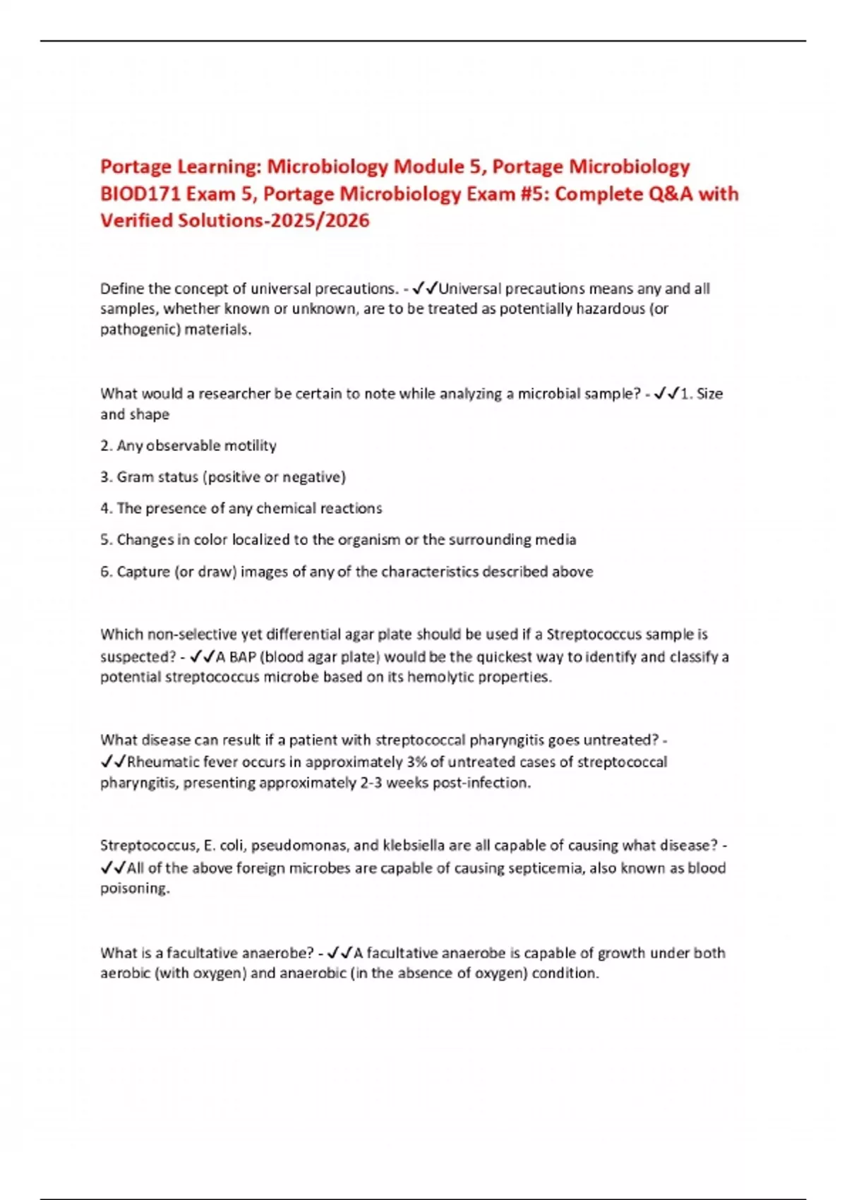 Portage Learning: Microbiology Module 5, Portage Microbiology BIOD171 Exam 5, Portage Microbiology Exam #5: Complete Q&A with Verified Solutions-2025/2026