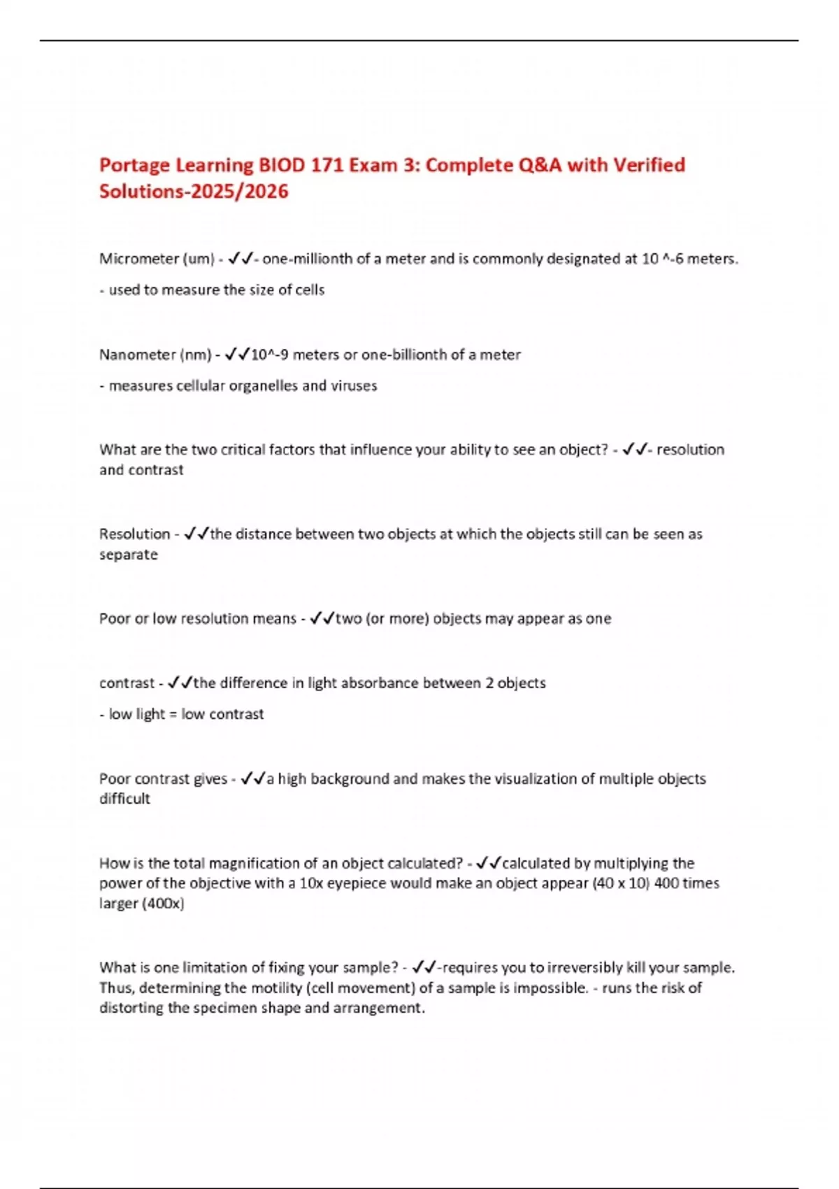 Portage Learning BIOD 171 Exam 3: Complete Q&A with Verified Solutions-2025/2026
