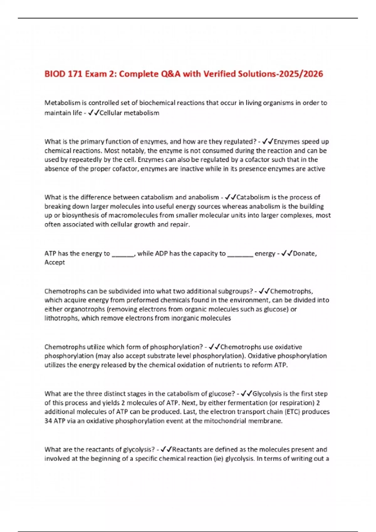BIOD 171 Exam 2: Complete Q&A with Verified Solutions-2025/2026