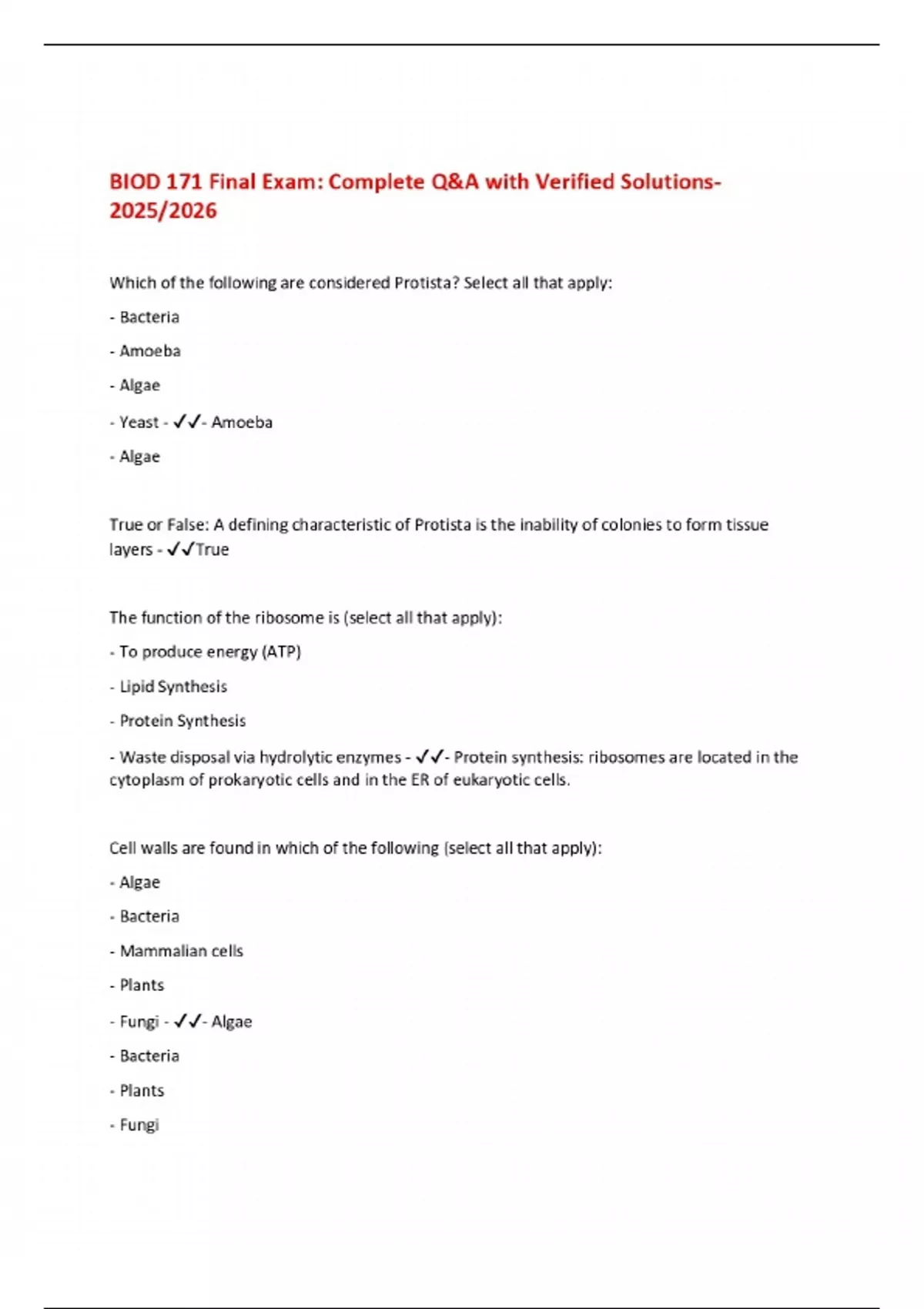 BIOD 171 Final Exam: Complete Q&A with Verified Solutions 2025/2026