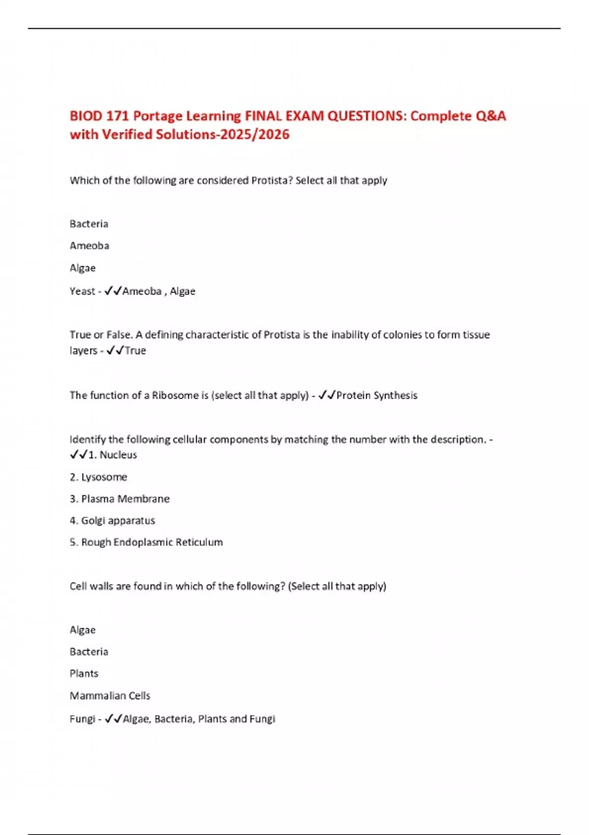 BIOD 171 Portage Learning FINAL EXAM QUESTIONS: Complete Q&A with Verified Solutions-2025/2026