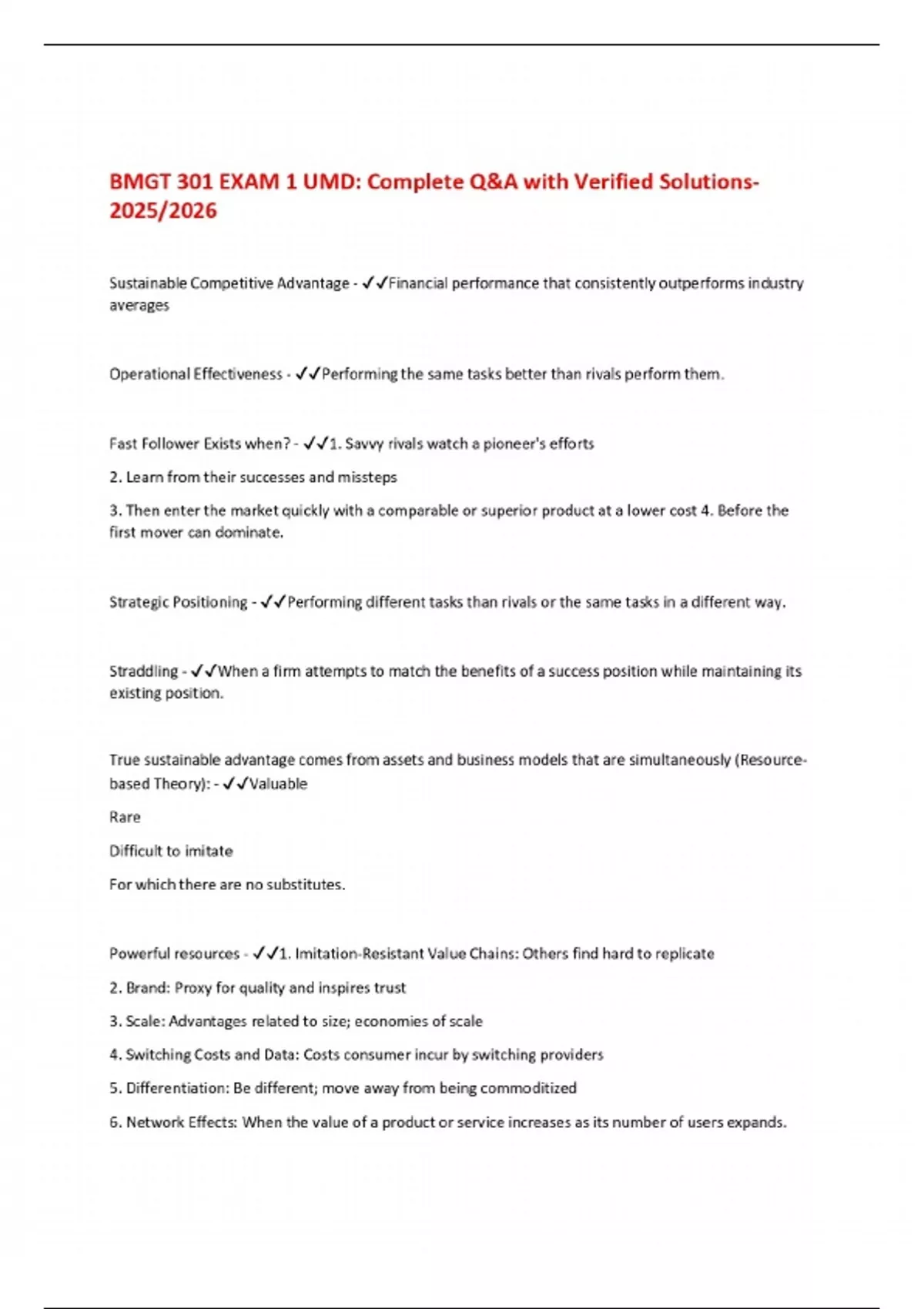 BMGT 301 EXAM 1 UMD: Complete Q&A with Verified Solutions 2025/2026