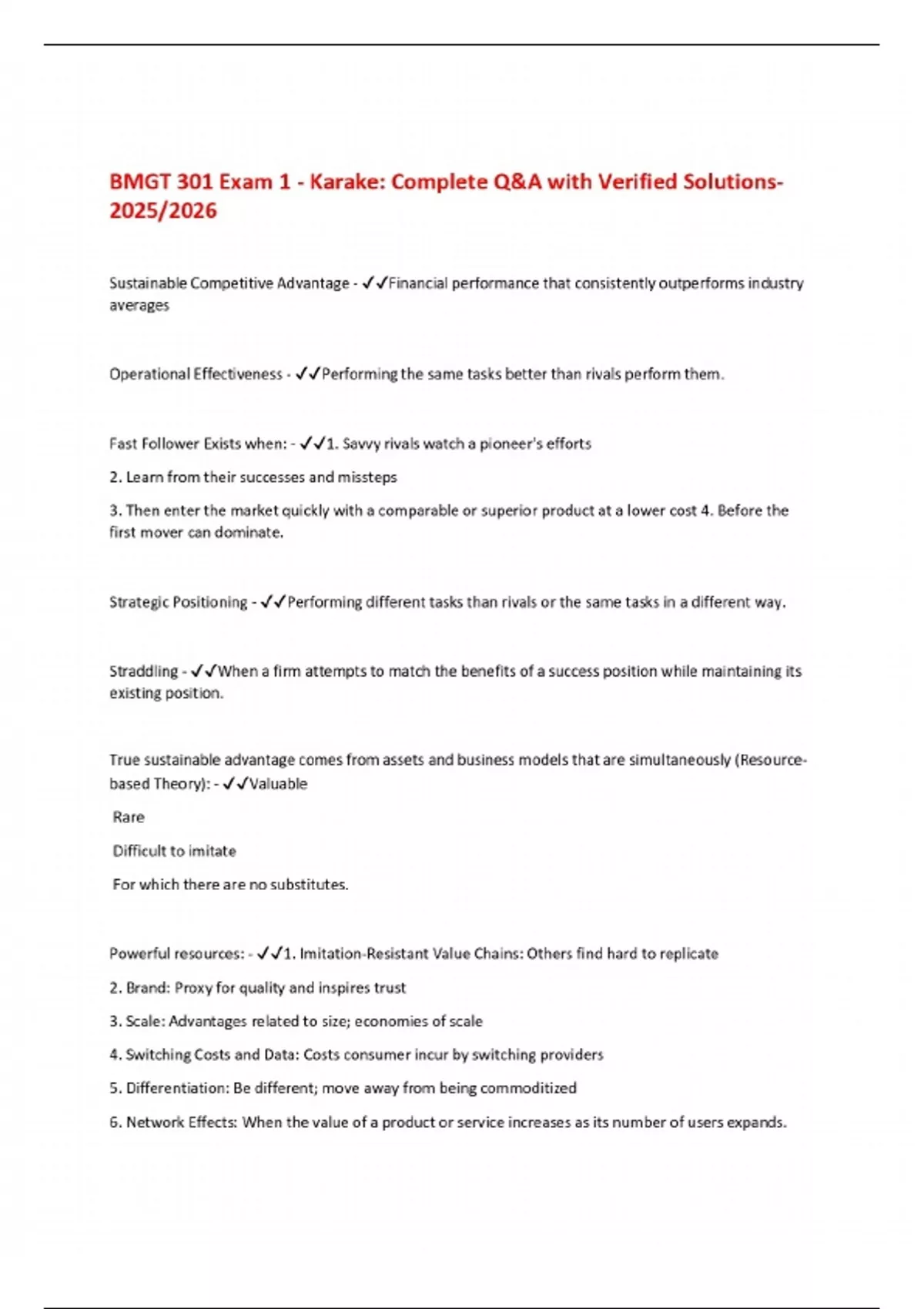 BMGT 301 Exam 1 - Karake: Complete Q&A with Verified Solutions 2025/2026