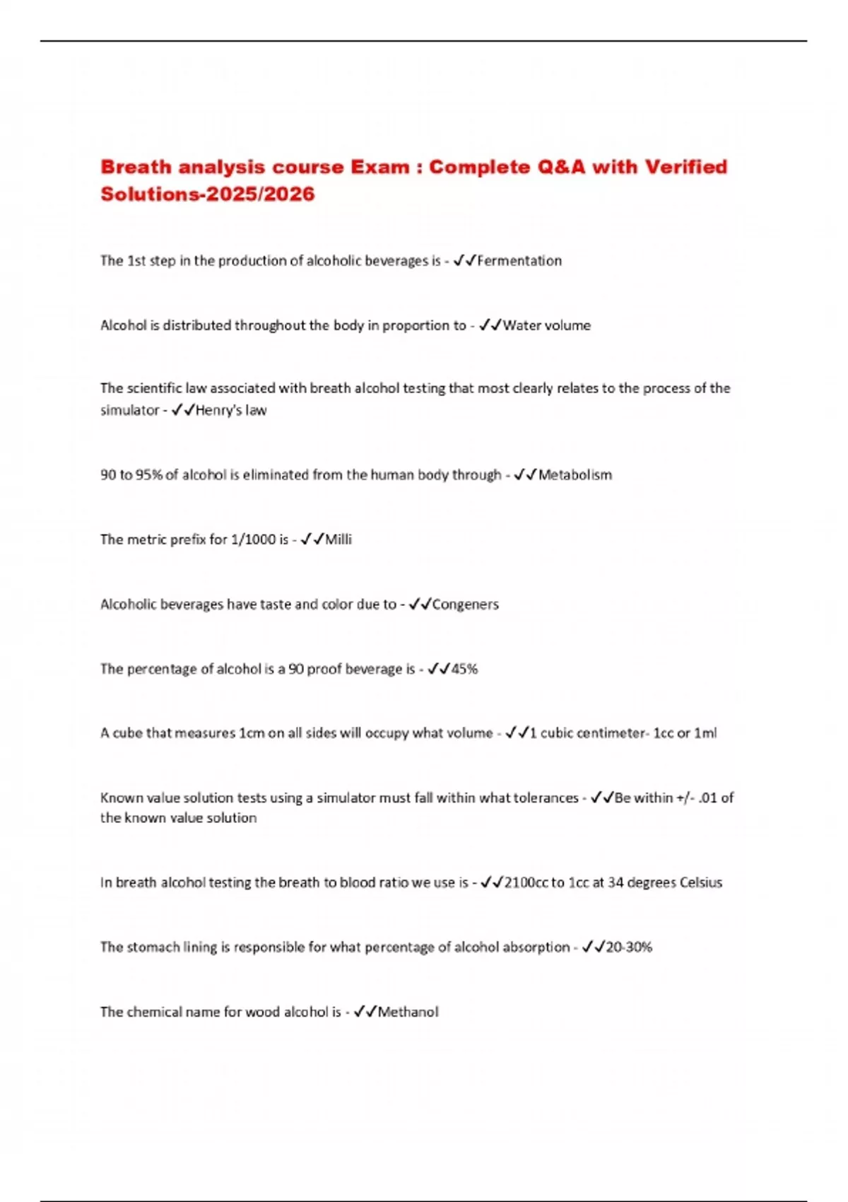 Breath analysis course Exam : Complete Q&A with Verified Solutions-2025/2026