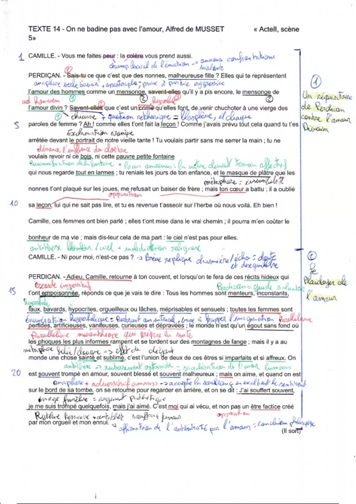 Ce document propose une analyse complète de l’acte II, scène 5 de la pièce On ne badine pas avec l’amour d’Alfred de Musset, dans laquelle Perdican prononce une tirade violente contre les religieuses et la religion. Le texte met en avant le registre polémique, les figures d’exagération, et la montée dramatique de la colère. Il permet de comprendre l’opposition entre foi et amour humain, et le conflit entre Camille et Perdican.