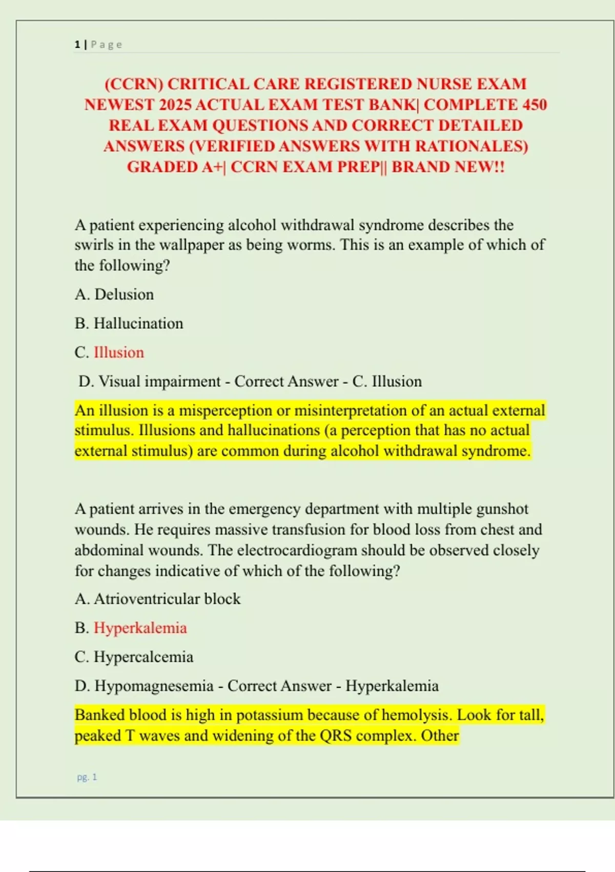 GRADED A+| CCRN EXAM PREP|| BRAND NEW!!