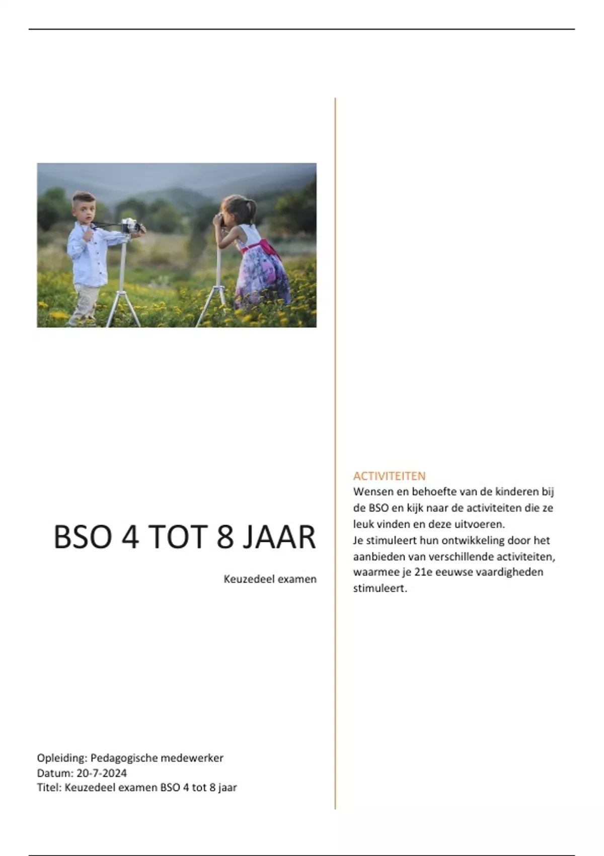 Titel: Keuzedeel examen BSO 4 tot 8 jaar