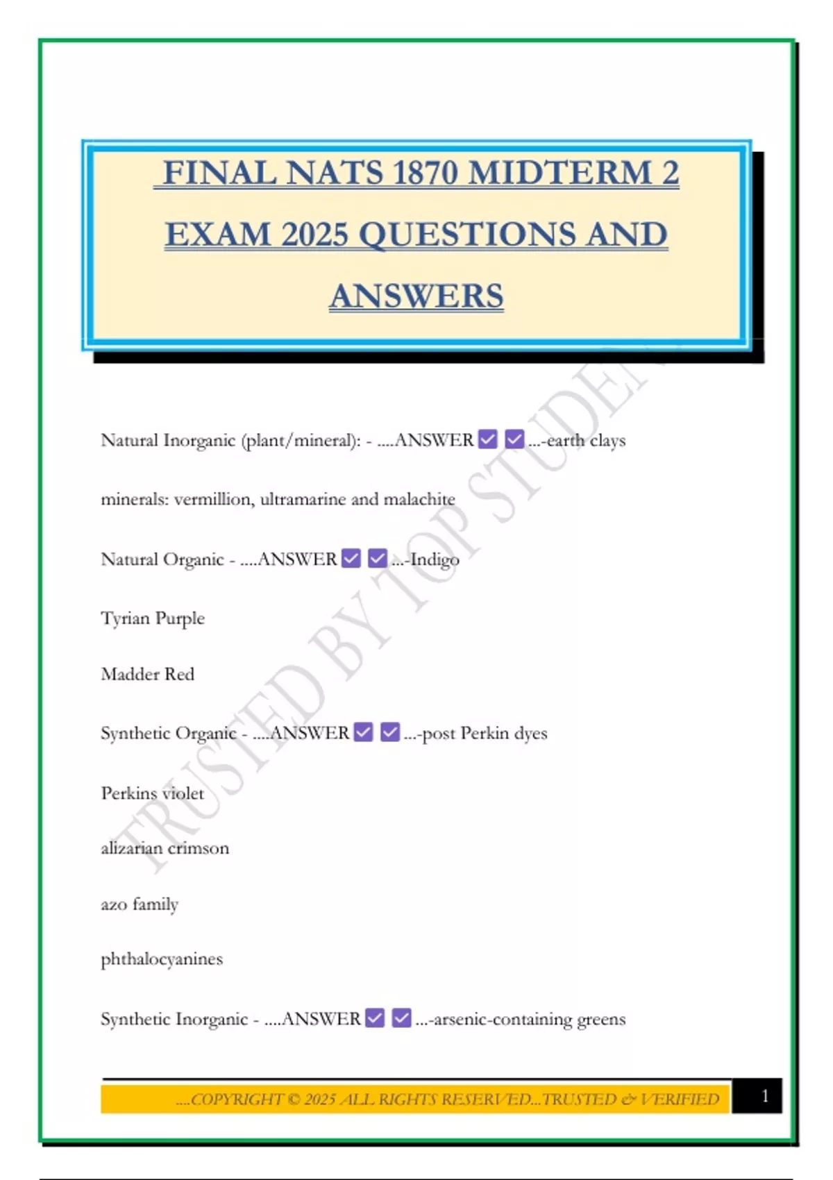 Synthetic Organic - ....ANSWER ...-post Perkin dyes