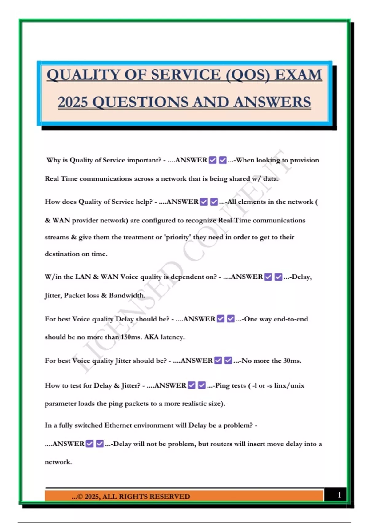 QUALITY OF SERVICE (QOS) EXAM 2025 QUESTIONS AND ANSWERS