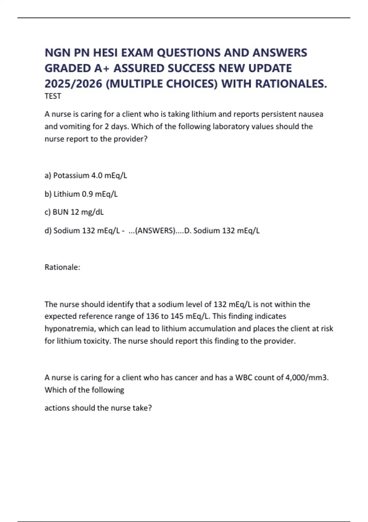 NGN PN HESI EXAM QUESTIONS AND ANSWERS