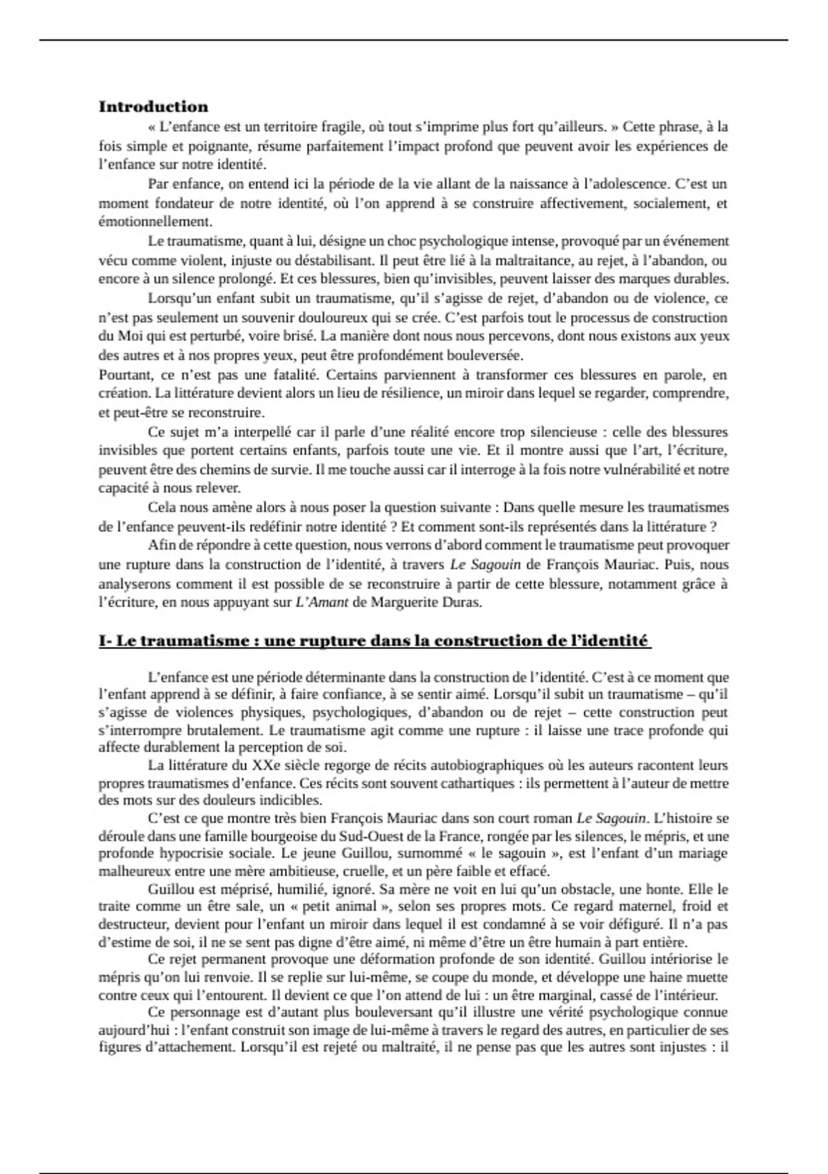 une rupture dans la construction de l’identité, à travers Le Sagouin de François Mauriac. Puis, nous