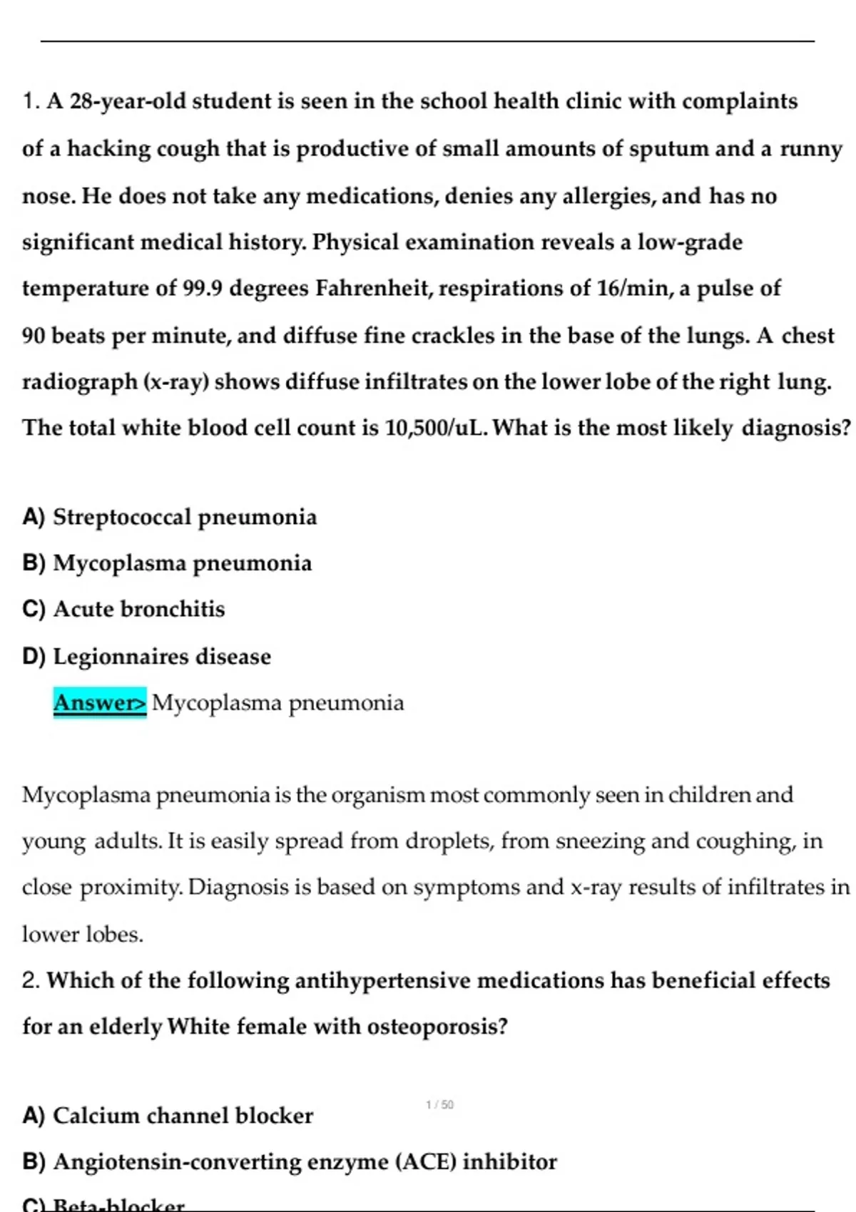 Answer> Mycoplasma pneumonia