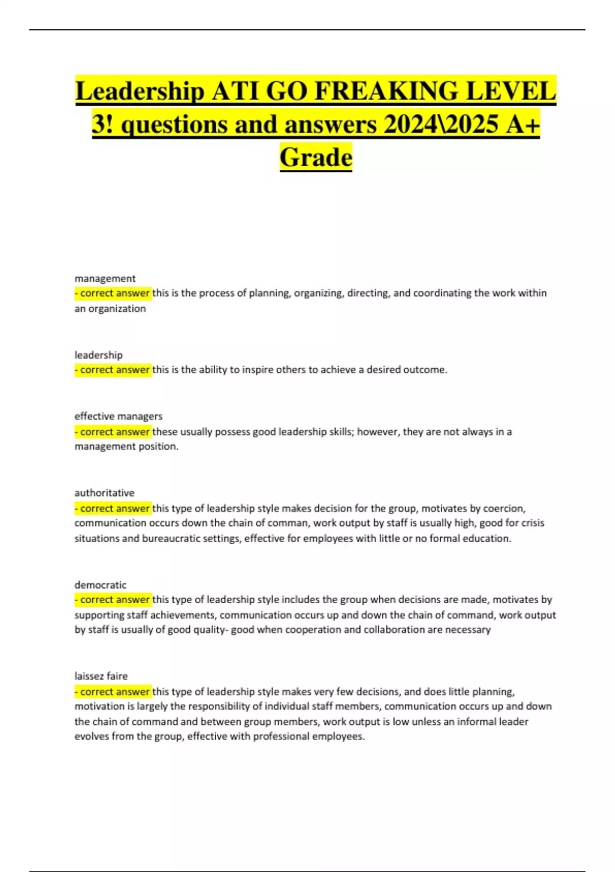 - correct answer this type of leadership style makes very few decisions, and does little planning,