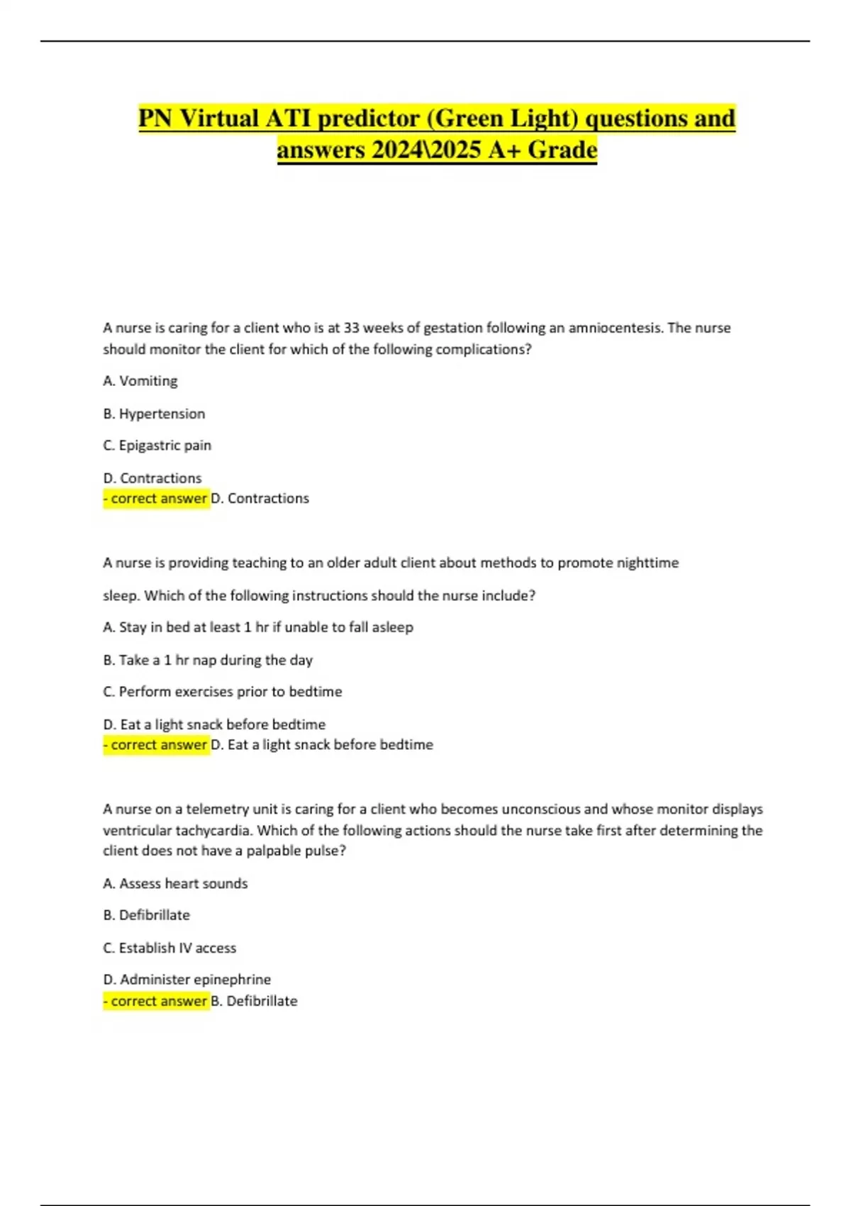 A nurse is caring for a client who is at 33 weeks of gestation following an amniocentesis. The nurse