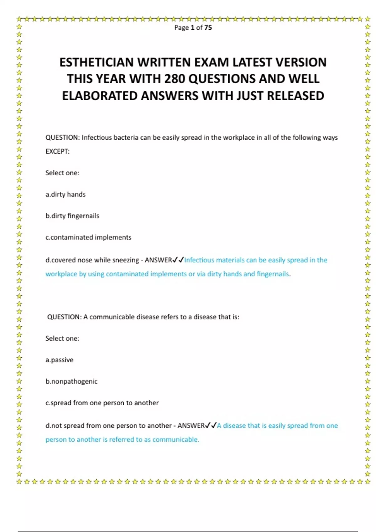ESTHETICIAN WRITTEN EXAM LATEST VERSION