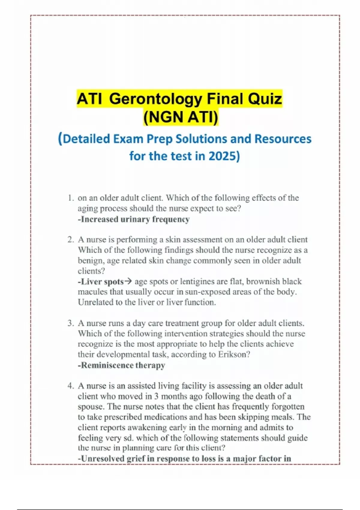 ATI Gerontology Final Quiz Latest 2025 Update!!!! GRADED A+ Study Guide Guaranteed 100-% pass!!!! ATI Gerontology Final Quiz Latest 2025 Update!!!! GRADED A+ Study Guide Guaranteed 100-% pass!!!!