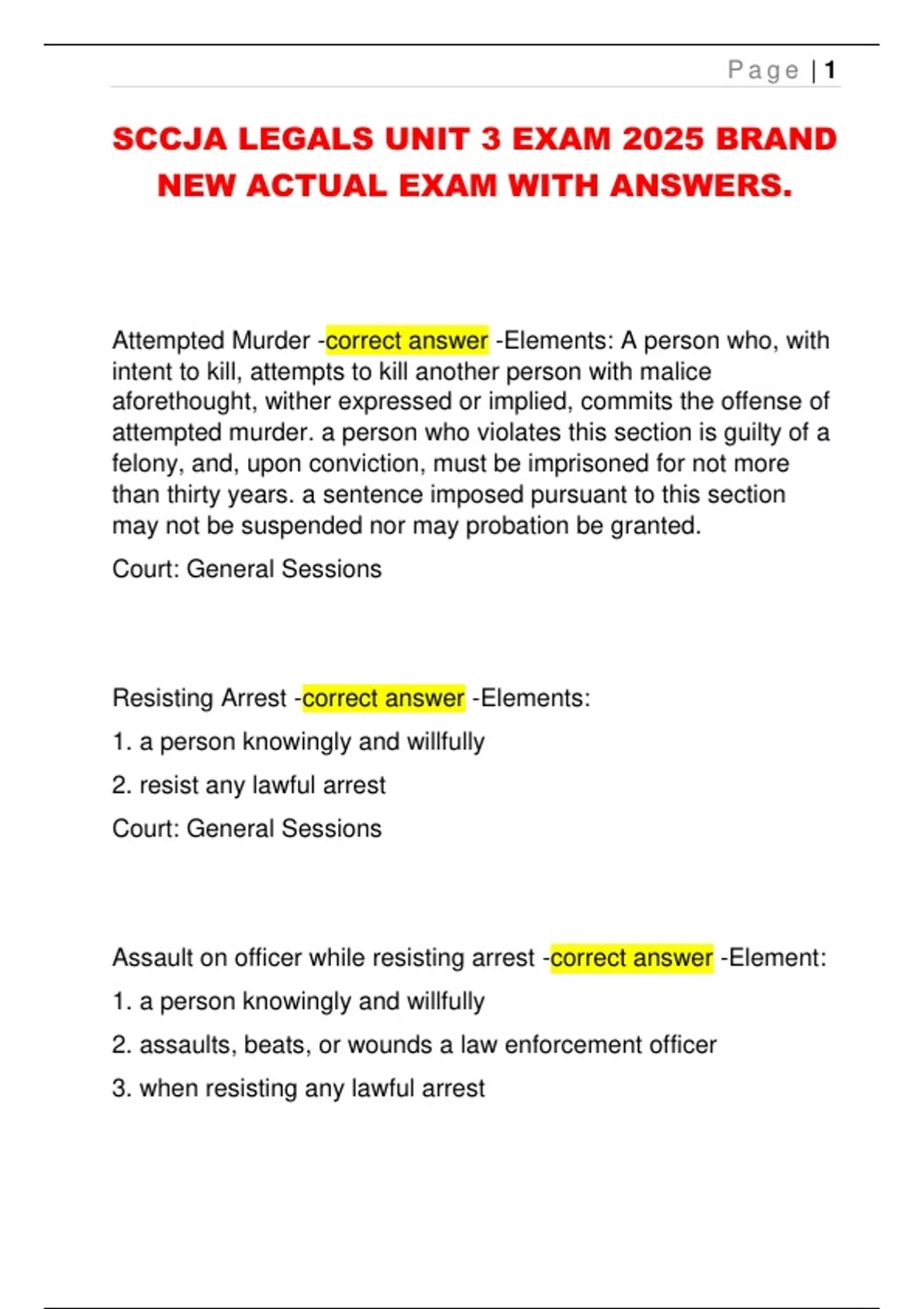 SCCJA LEGALS UNIT 3 EXAM 2025 BRAND