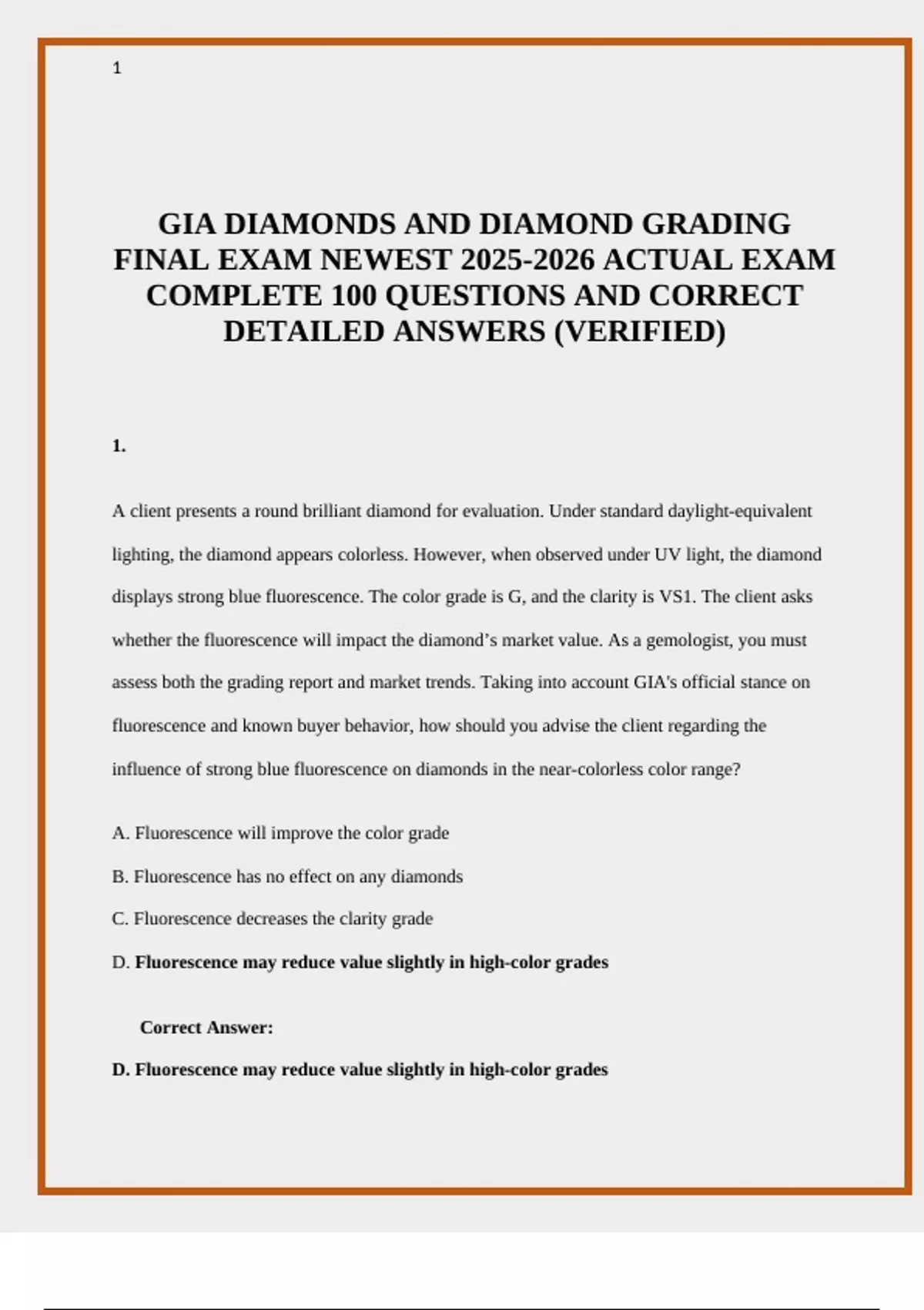 whether the fluorescence will impact the diamond’s market value. As a gemologist, you must