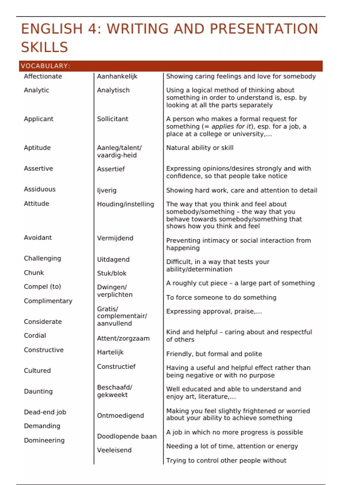 ENGLISH 4: WRITING AND PRESENTATION