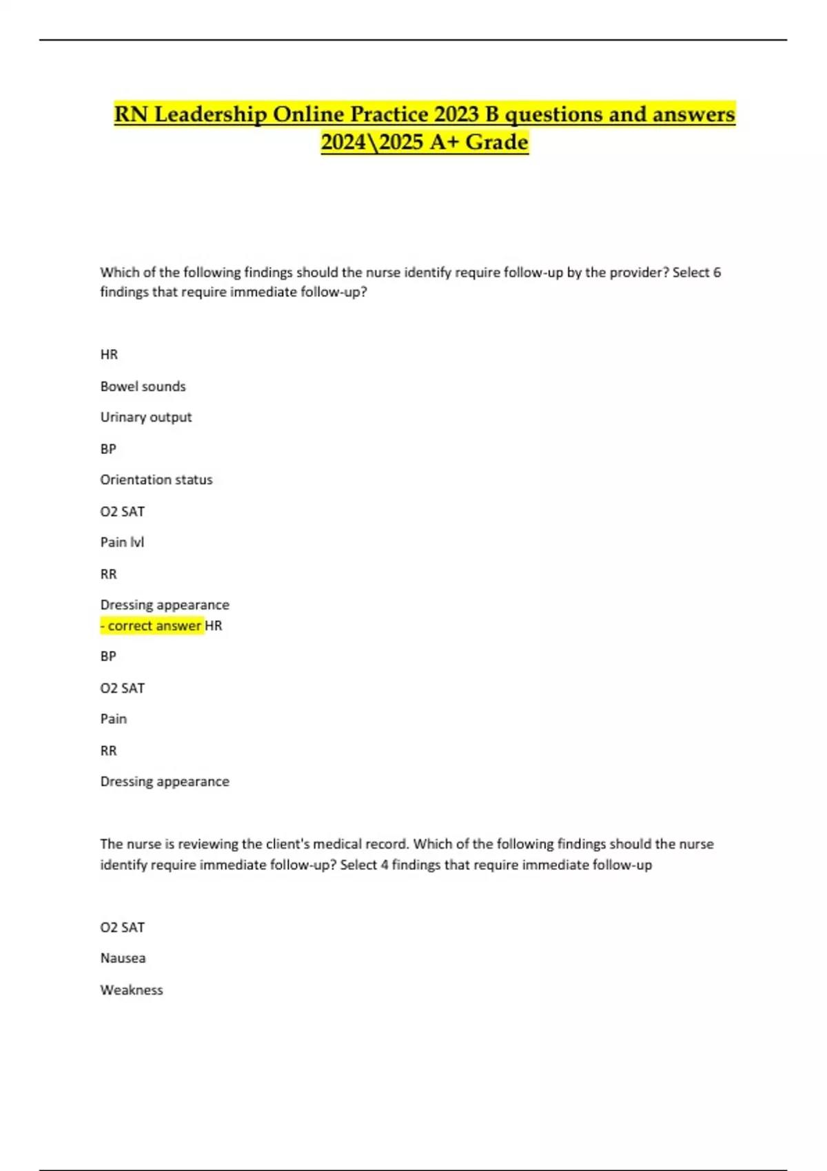 identify require immediate follow-up? Select 4 findings that require immediate follow-up