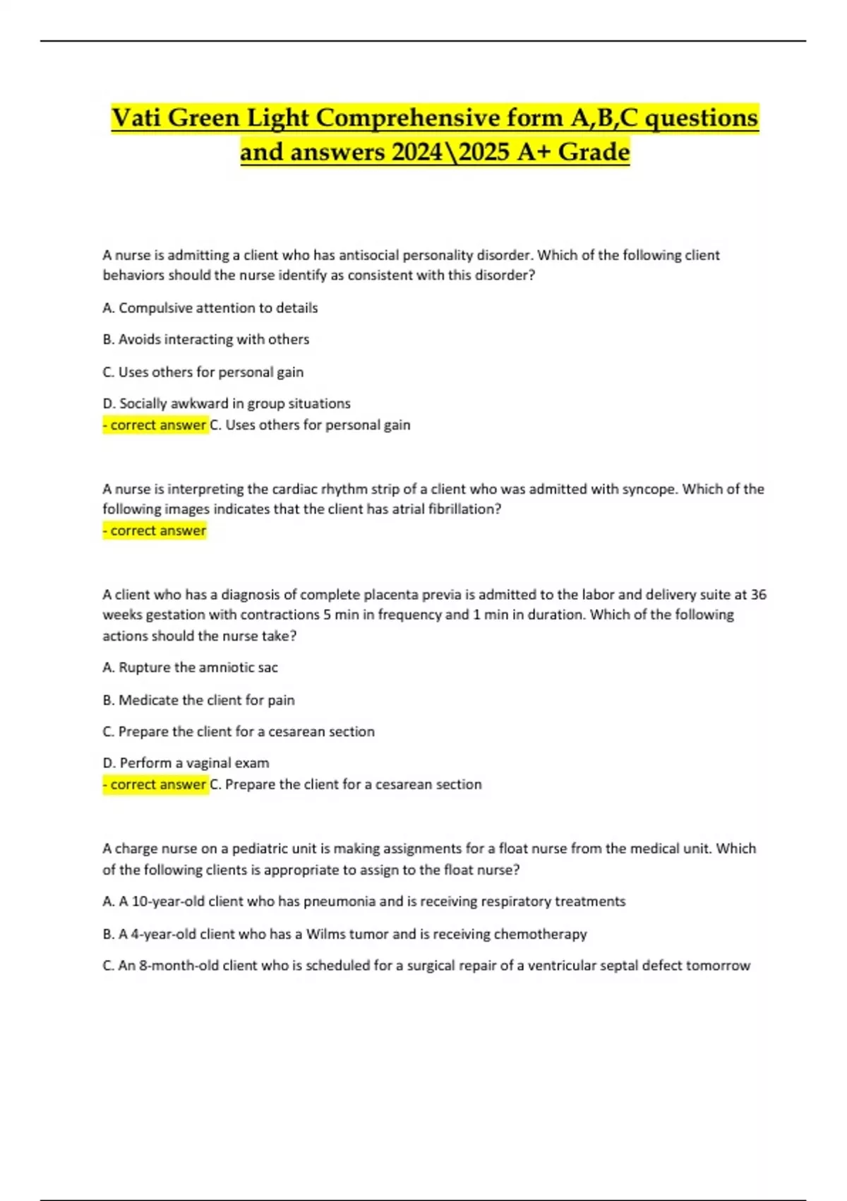 A client who has a diagnosis of complete placenta previa is admitted to the labor and delivery suite at 36