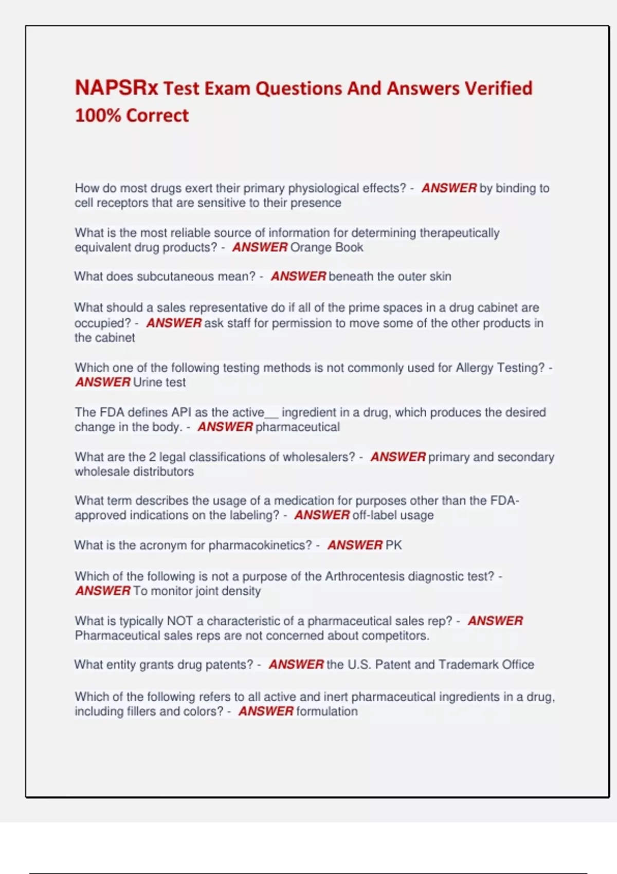 NAPSRx Test Exam Questions And Answers Verified 100% Correct
