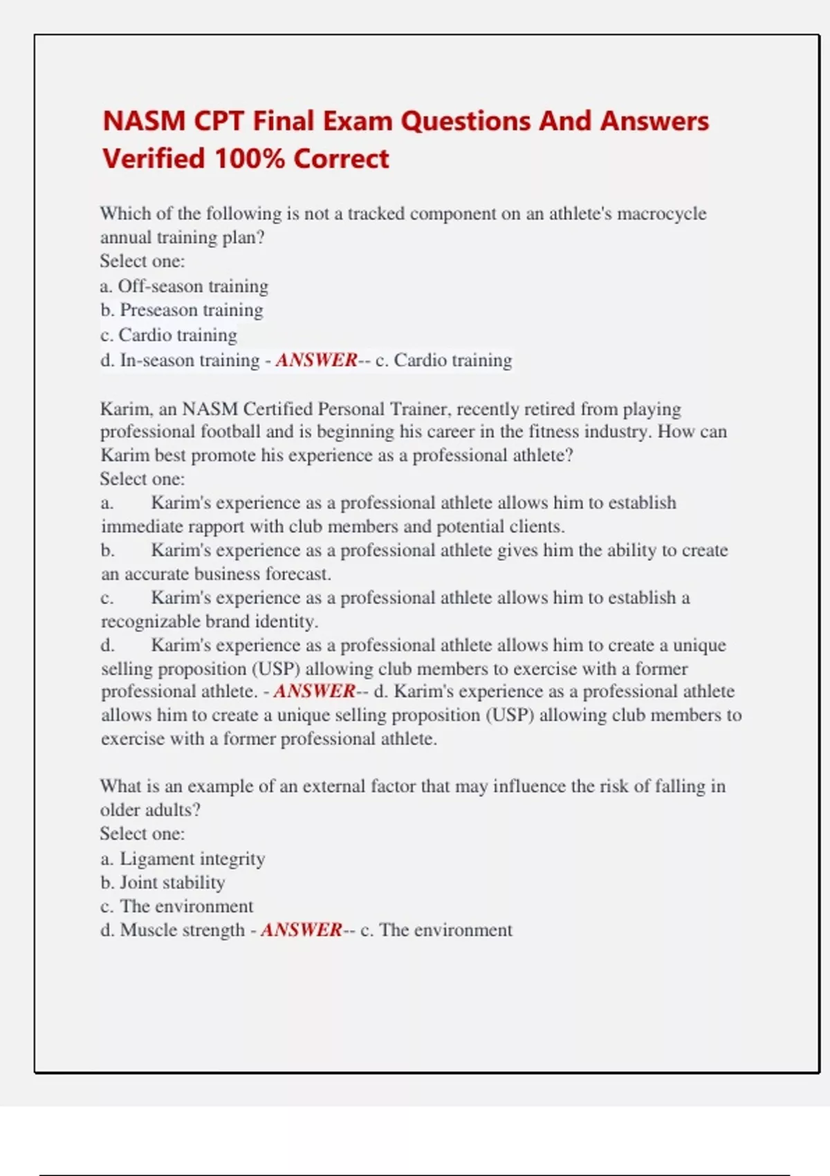 NASM CPT Final Exam Questions And Answers Verified 100% Correct