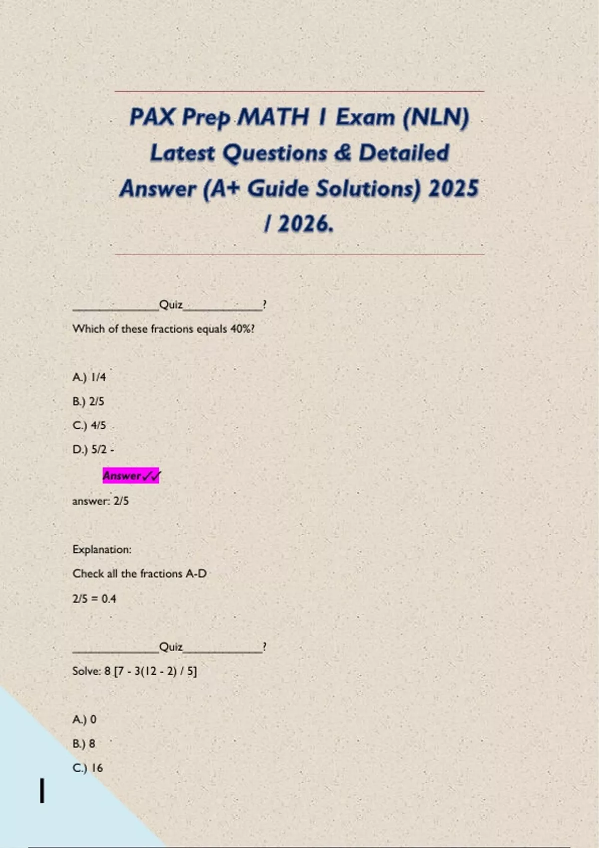 Which of these fractions equals 40%?