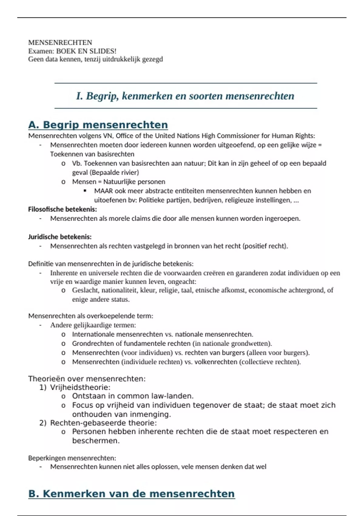 Samenvatting Mensenrechten (14/20 eerste zit) + TIPS PROF