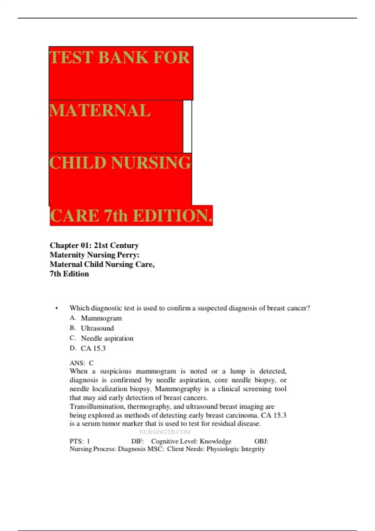 OBJ: Nursing Process: Assessment MSC: Client Needs: Physiologic Integrity
