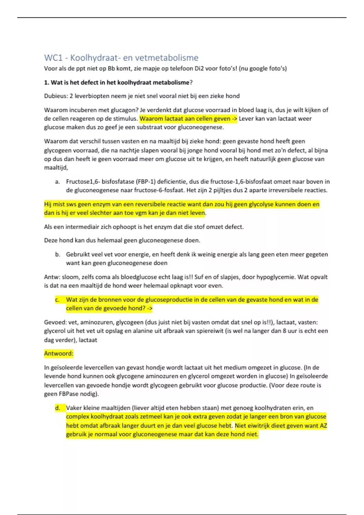 levende hond kunnen ook glycogene aminozuren en glycerol omgezet worden in glucose) In geïsoleerde