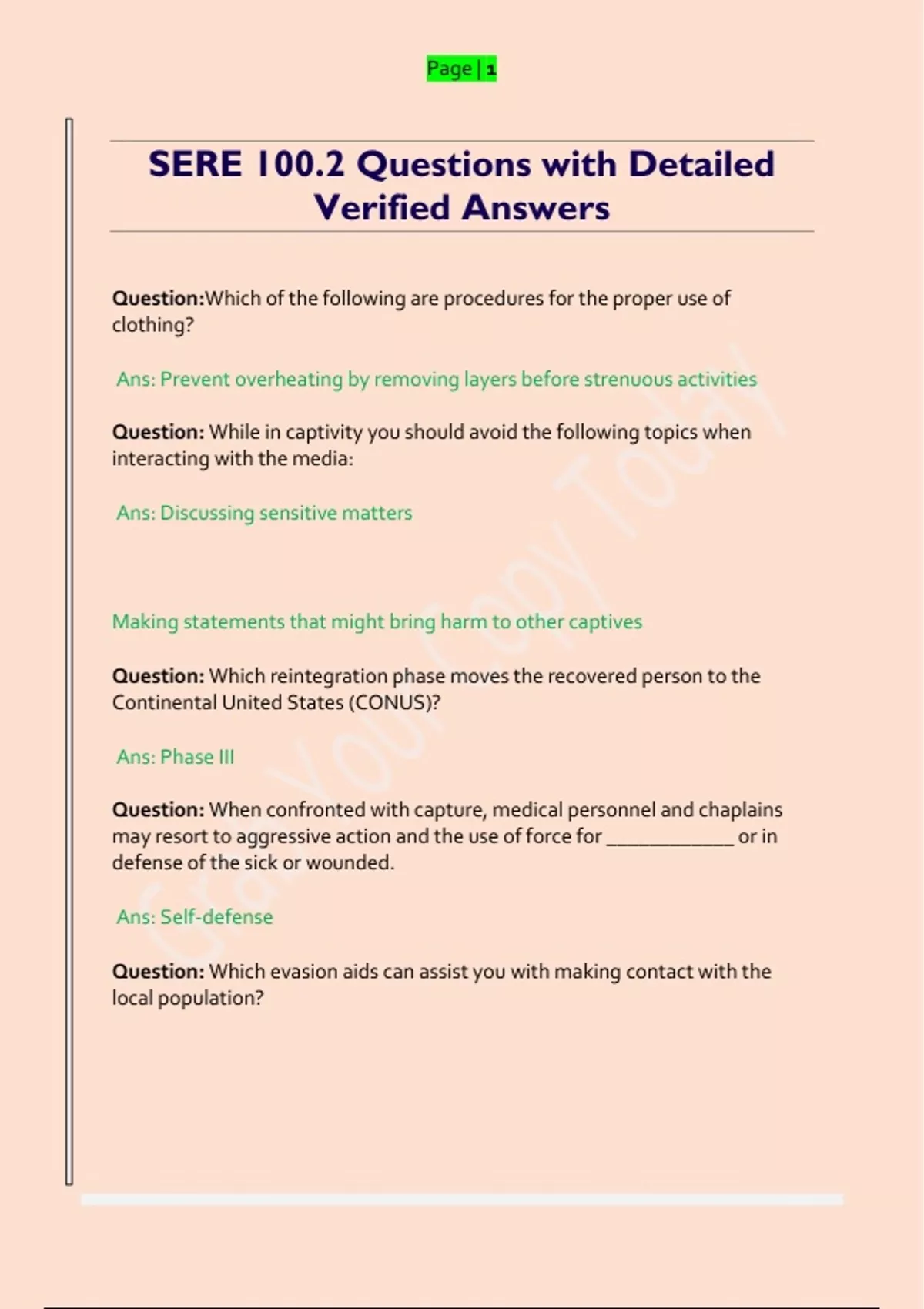 SERE 100.2 Questions with Detailed