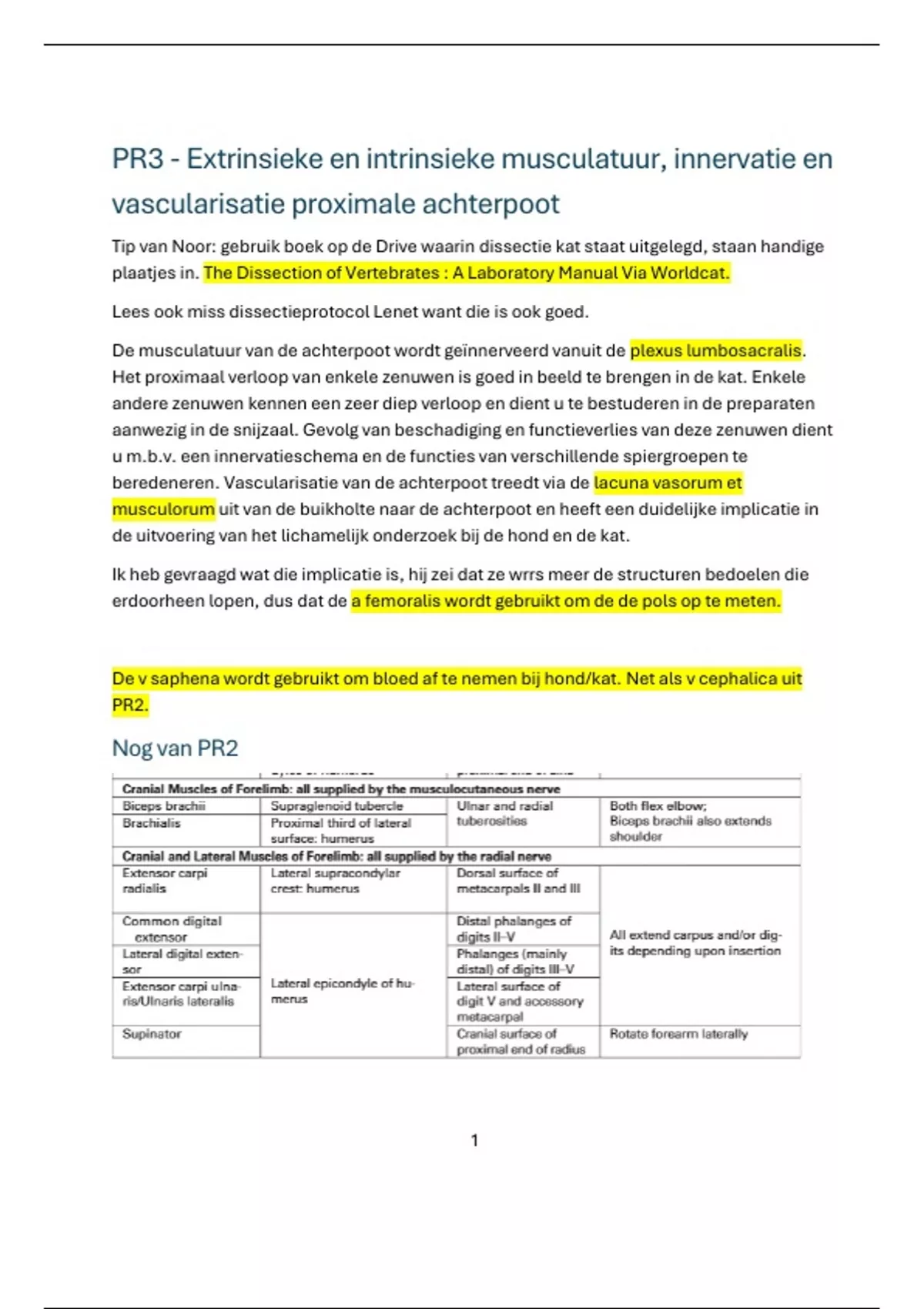 Tip van Noor: gebruik boek op de Drive waarin dissectie kat staat uitgelegd, staan handige