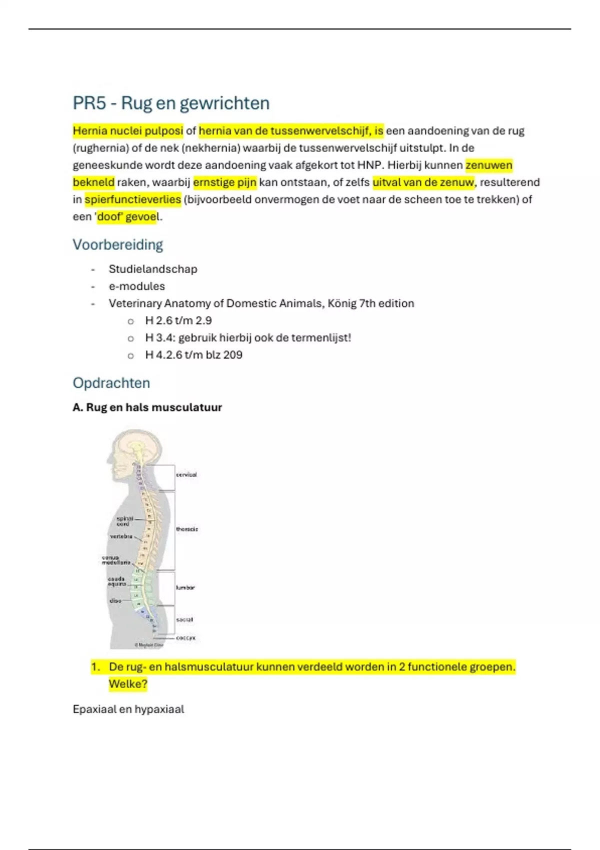 spiergroepen van vraag 1. Hoe kunt u aan de globale positie van een rugspier al zien