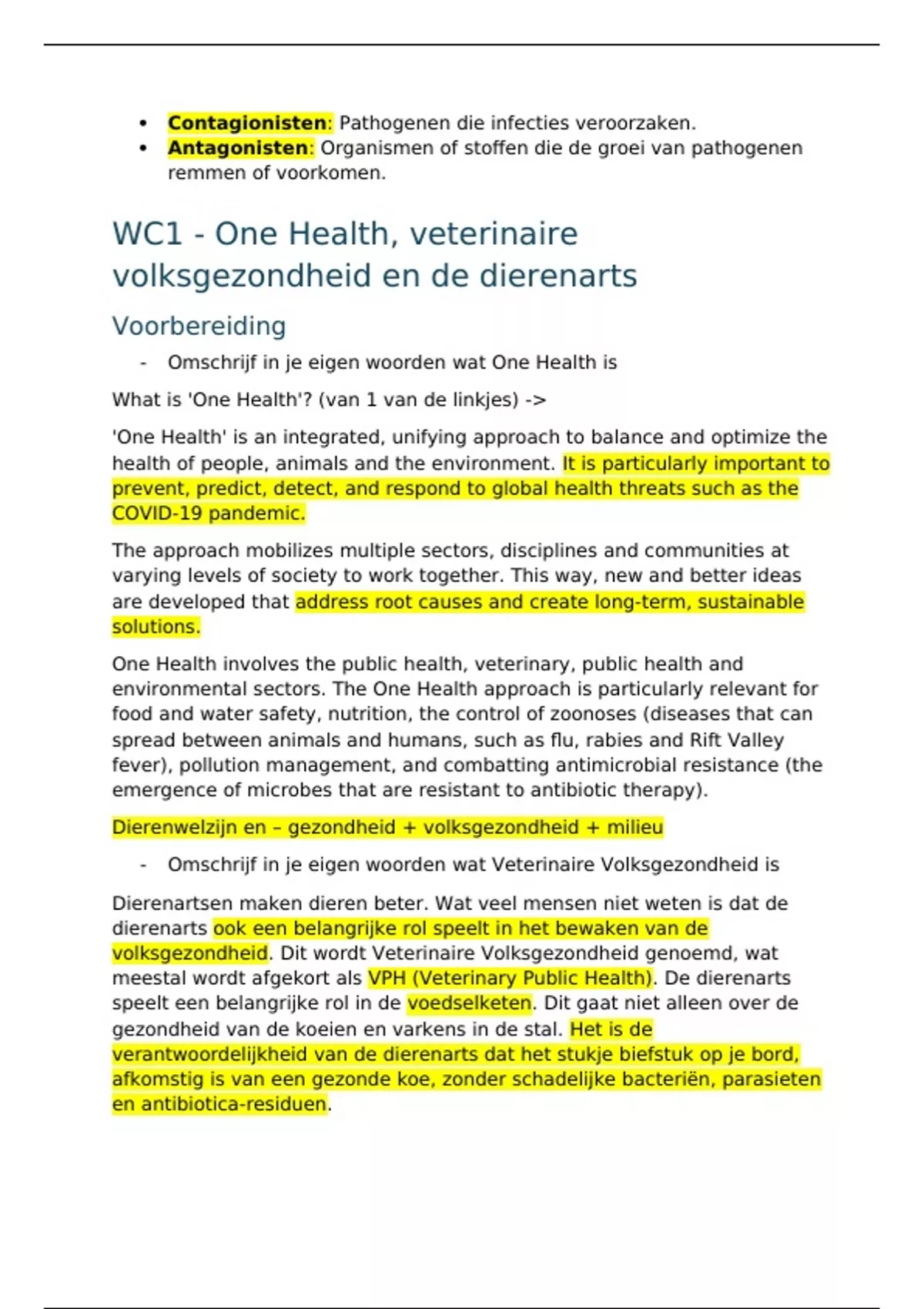 - Omschrijf in je eigen woorden wat Veterinaire Volksgezondheid is