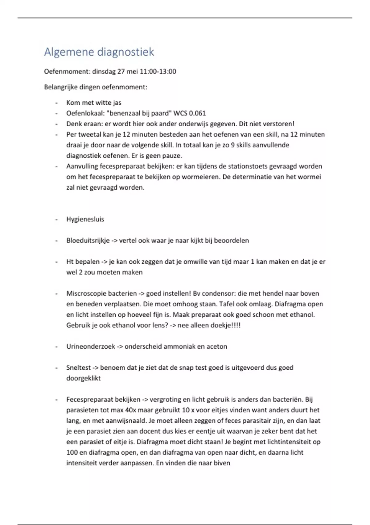 - Aanvulling fecespreparaat bekijken: er kan tijdens de stationstoets gevraagd worden