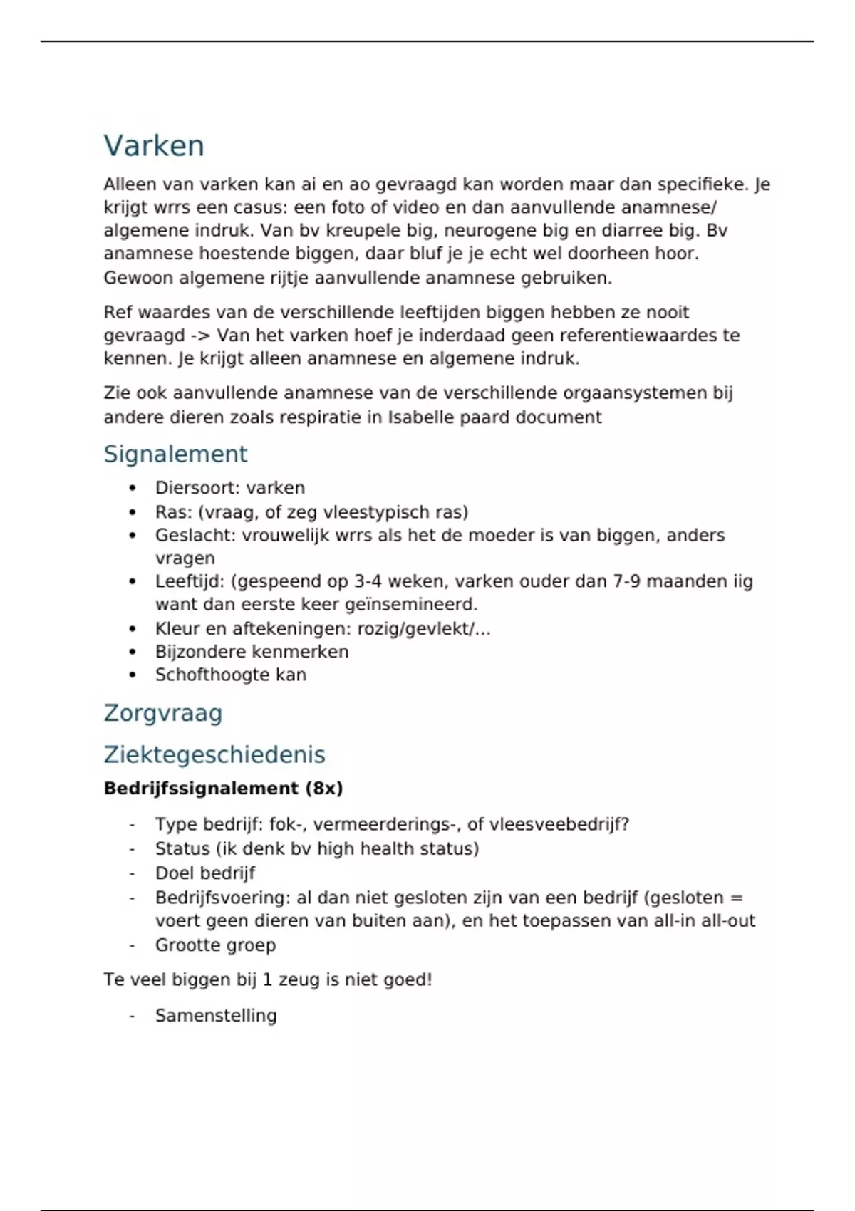 anamnese hoestende biggen, daar bluf je je echt wel doorheen hoor.