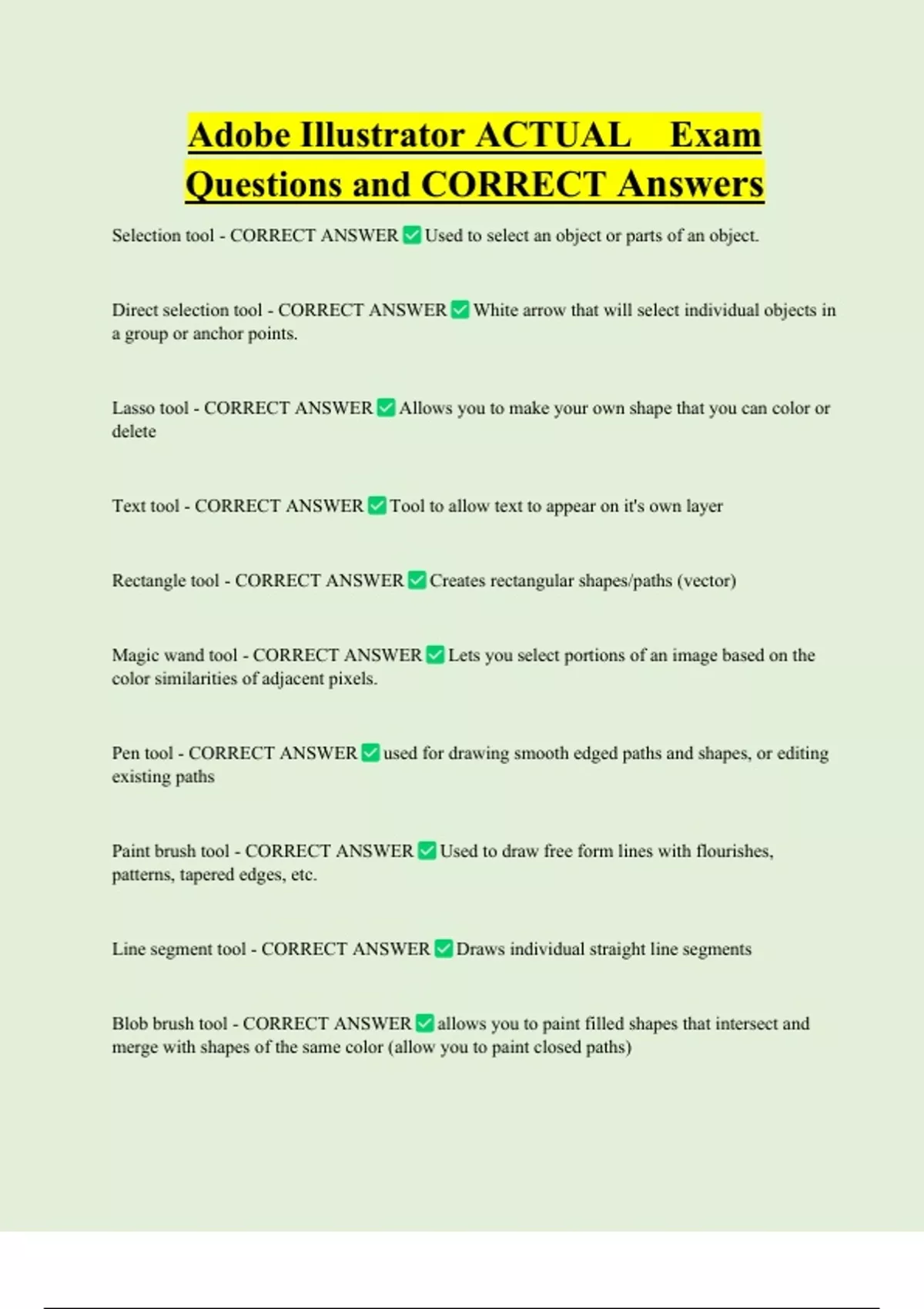 Questions and CORRECT Answers
