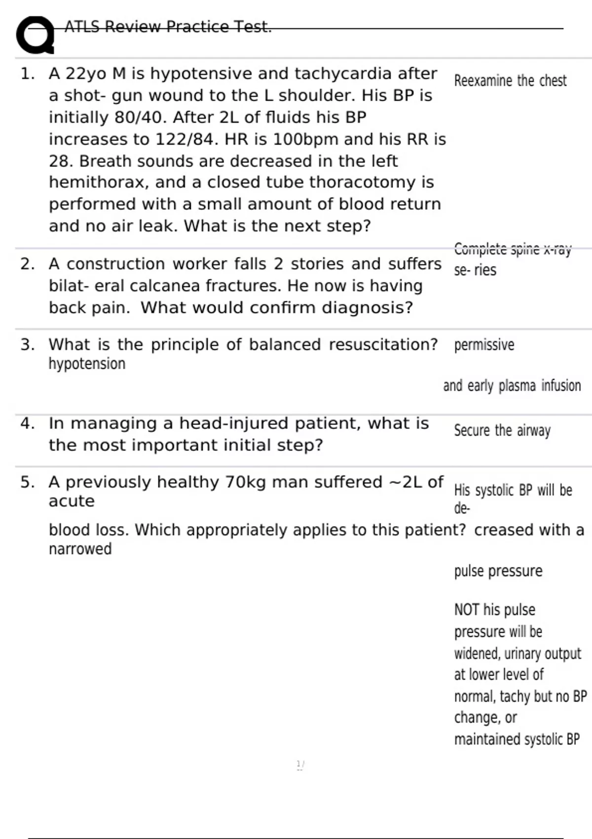 , ATLS Review Practice Test.