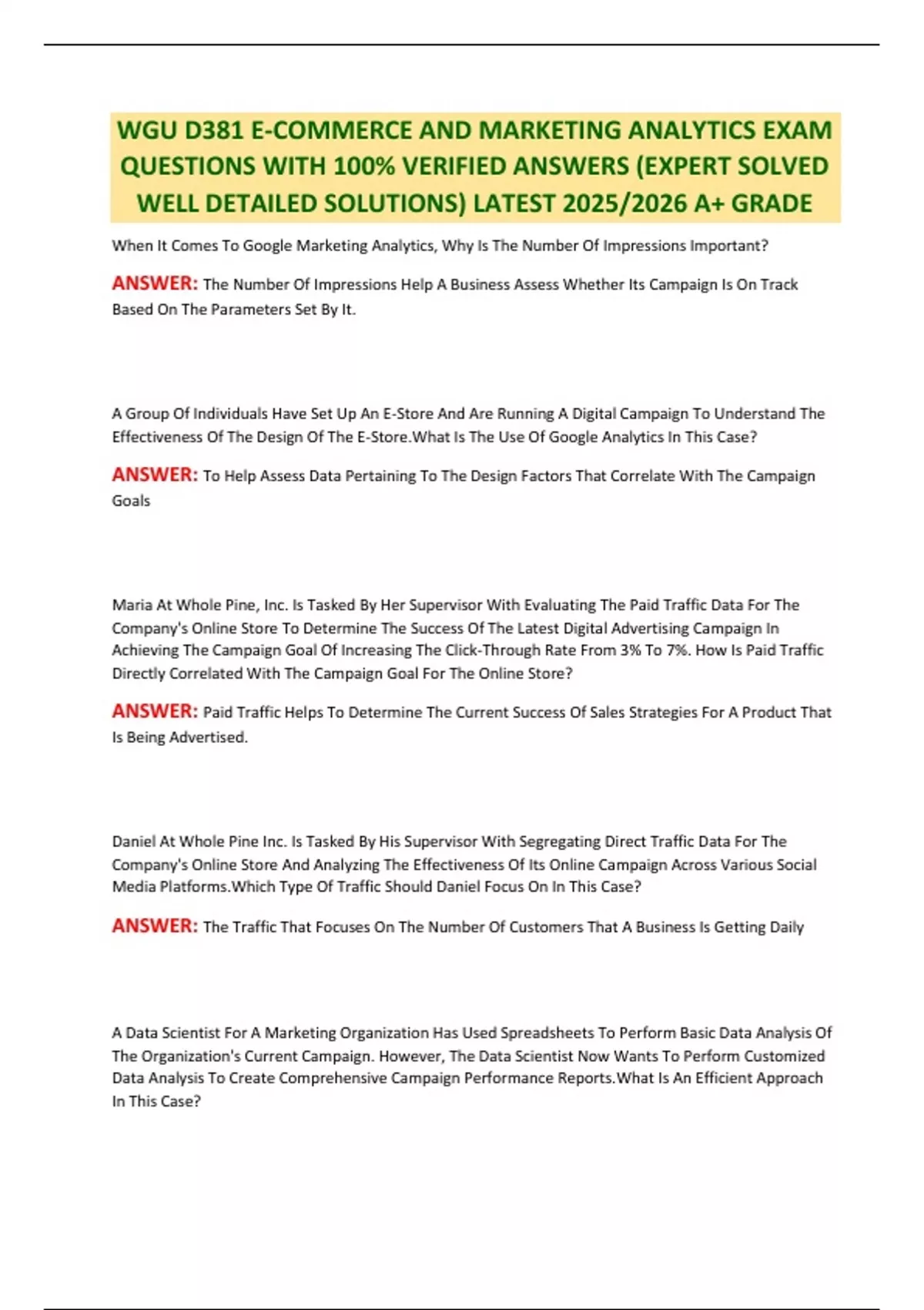 Maria At Whole Pine, Inc. Is Tasked By Her Supervisor With Evaluating The Paid Traffic Data For The