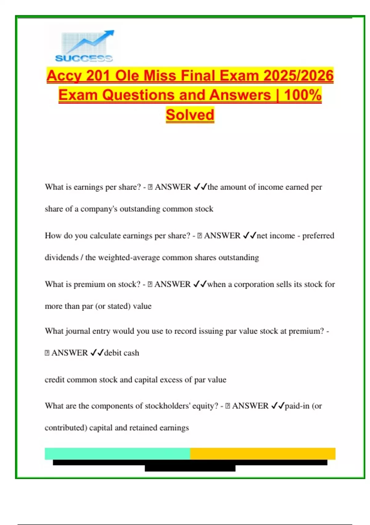 How do you calculate earnings per share? - 🧠 ANSWER ✔✔net income - preferred