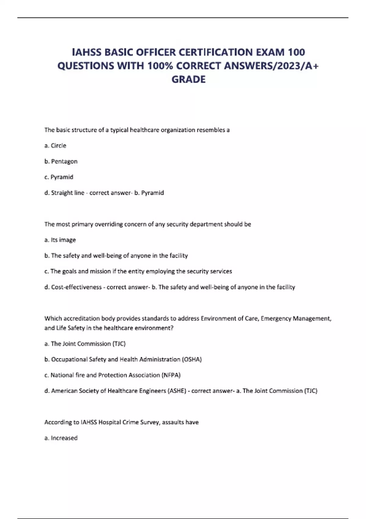 IAHSS BASIC OFFICER CERTIFICATION EXAM 100 QUESTIONS WITH 100- CORRECT ANSWERS 2025