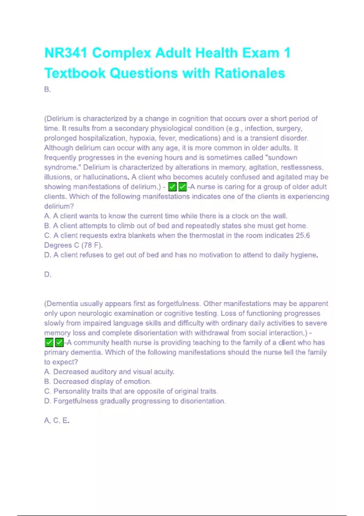 NR341 Complex Adult Health Exam 1 Textbook Questions & answers with Rationales,Verified