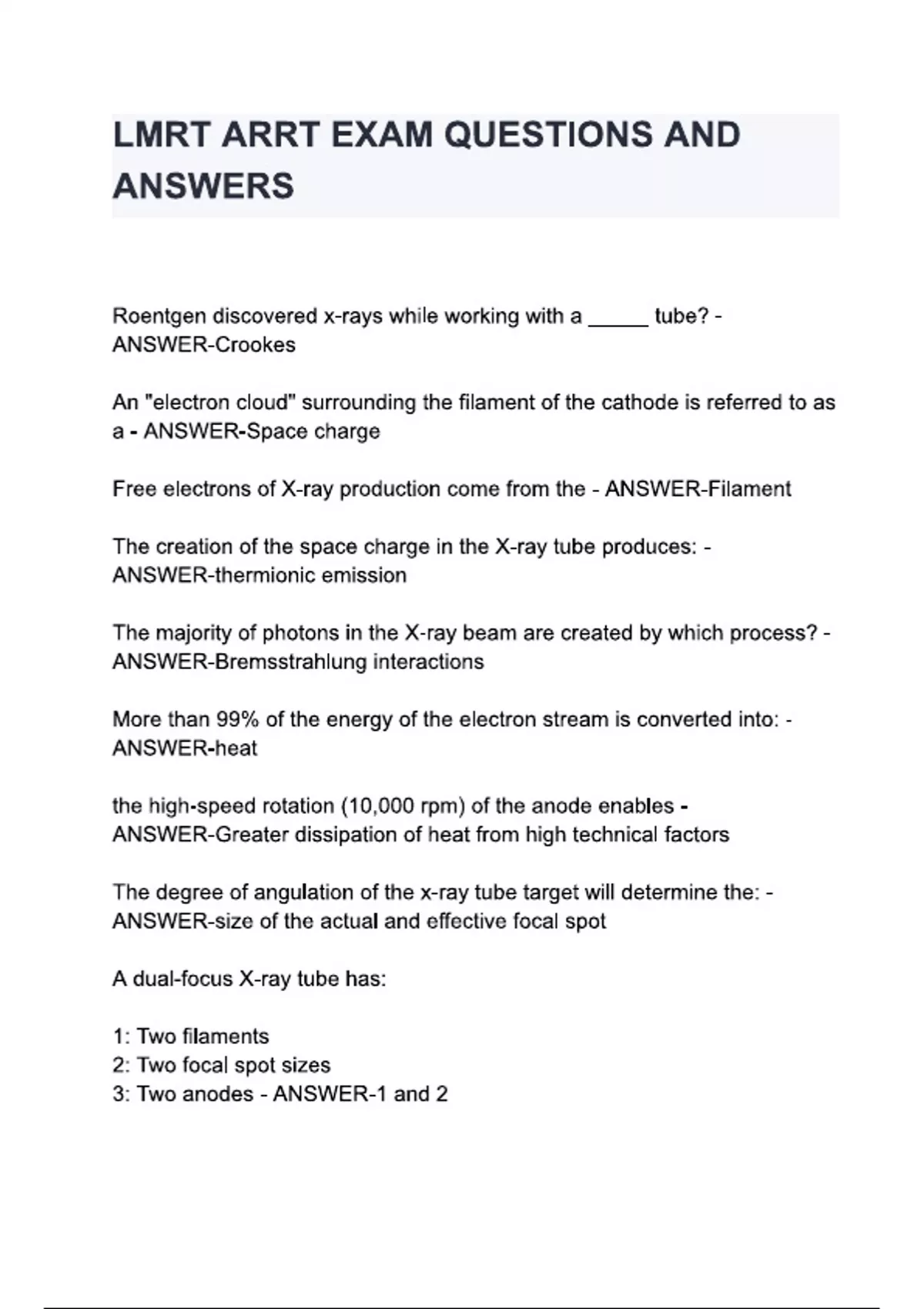 LMRT ARRT EXAM QUESTIONS AND ANSWERS