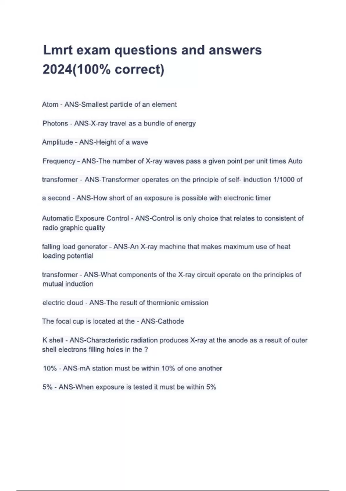 Lmrt exam questions and answers 2024(100- correct)