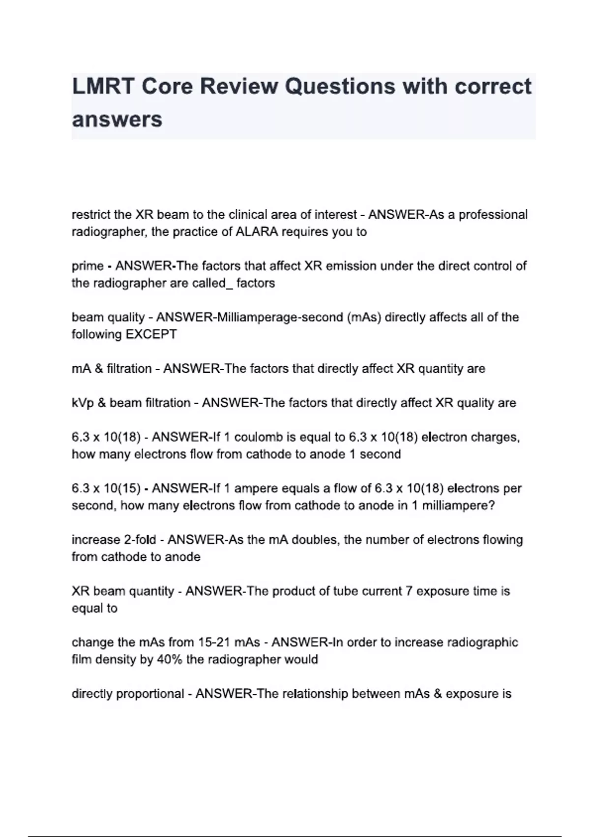 LMRT Core Review Questions with correct answers
