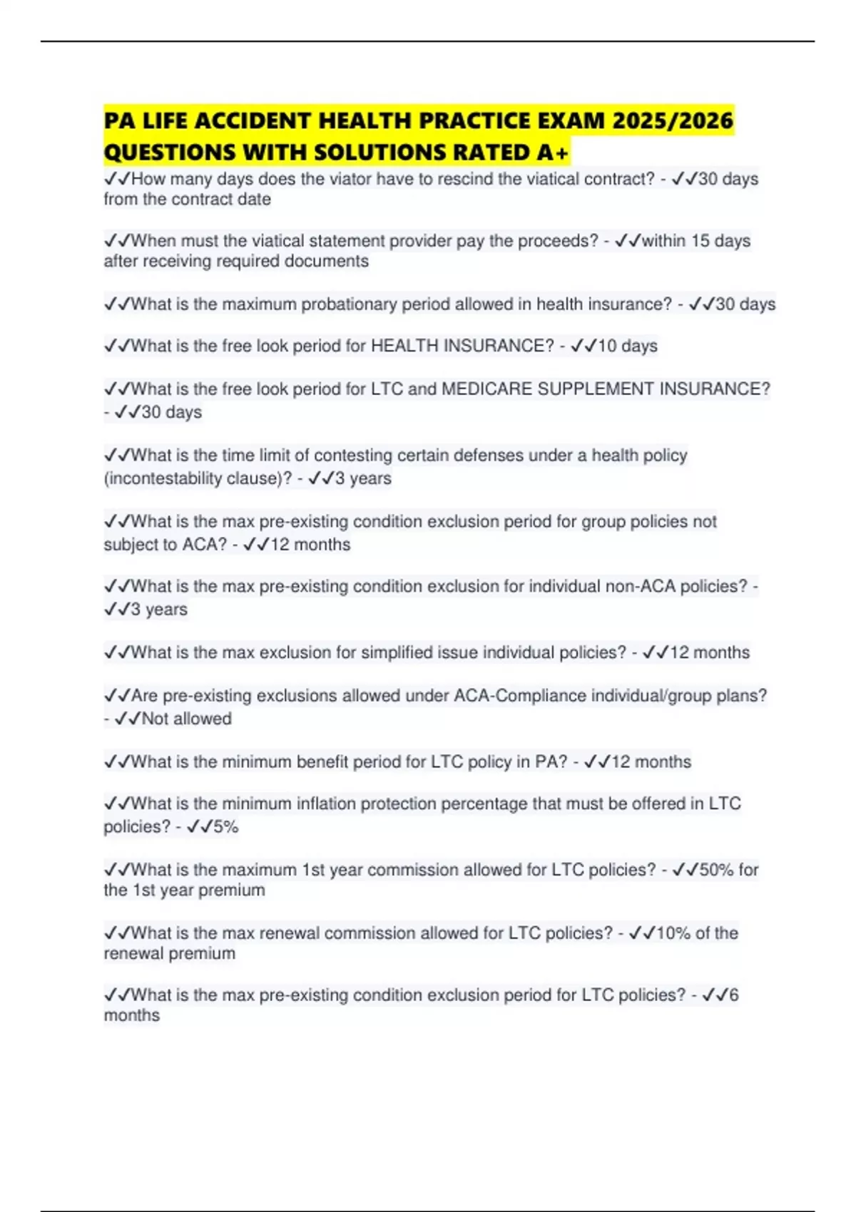 PA LIFE ACCIDENT HEALTH PRACTICE EXAM 2025/2026 QUESTIONS WITH SOLUTIONS RATED A+